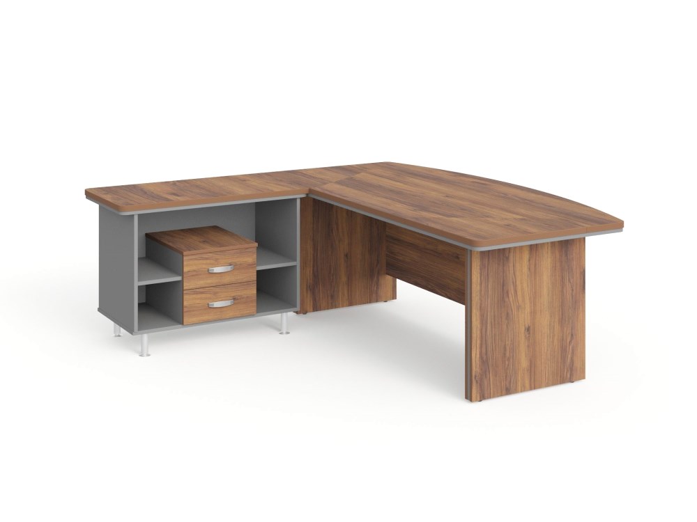 Стол руководителя угловой L с тумбой 2 ящика RB070-200X200L-WN-G купить по цене 81480 руб. в Санкт-Петербурге — интернет магазин РЕМИ