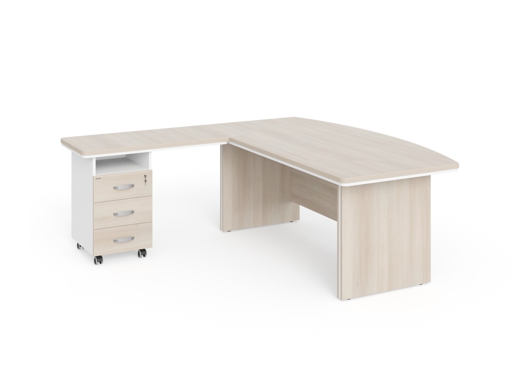 Стол руководителя угловой L с тумбой 3 ящика RB071-180X200L-A-W купить по цене 71400 руб. в Санкт-Петербурге — интернет магазин РЕМИ