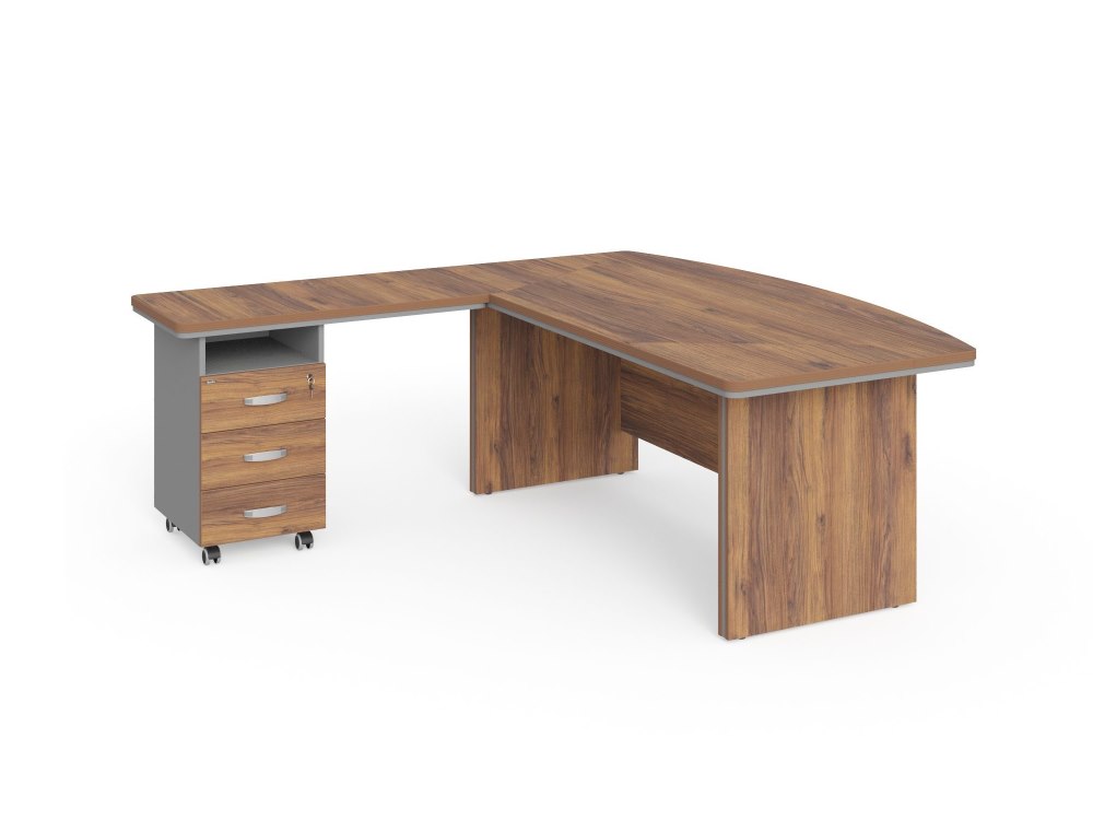 Стол руководителя угловой L с тумбой 3 ящика RB071-200X200L-WN-G купить по цене 73920 руб. в Санкт-Петербурге — интернет магазин РЕМИ