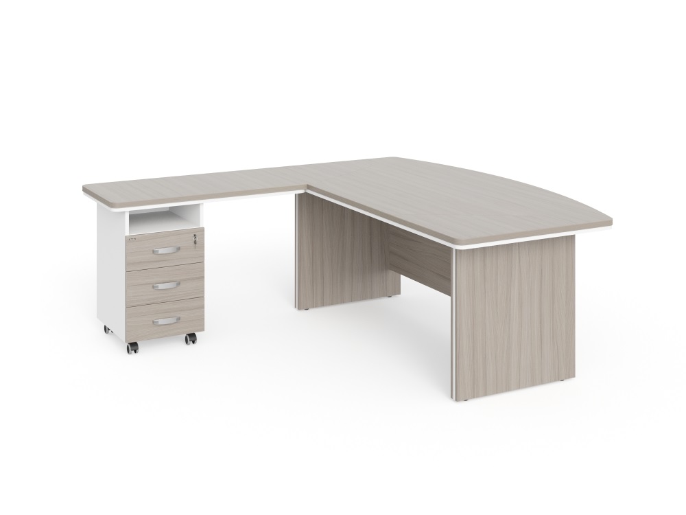 Стол руководителя угловой L с тумбой 3 ящика RB071-200X200L-D-W купить по цене 73920 руб. в Санкт-Петербурге — интернет магазин РЕМИ