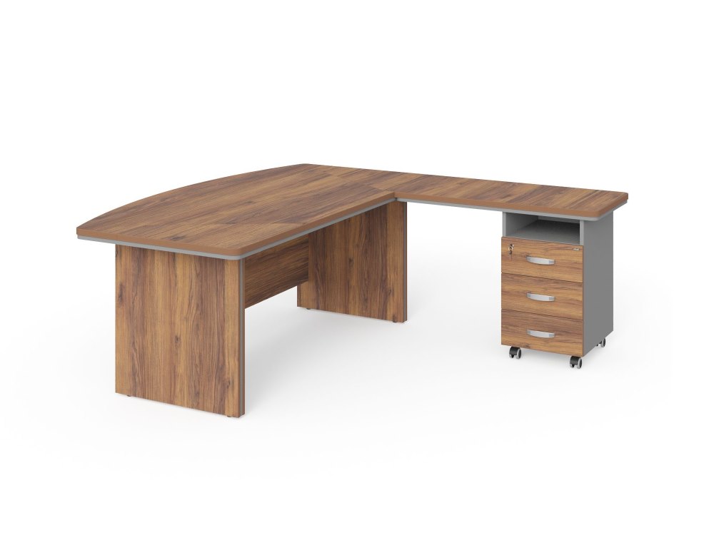 Стол руководителя угловой R с тумбой 3 ящика