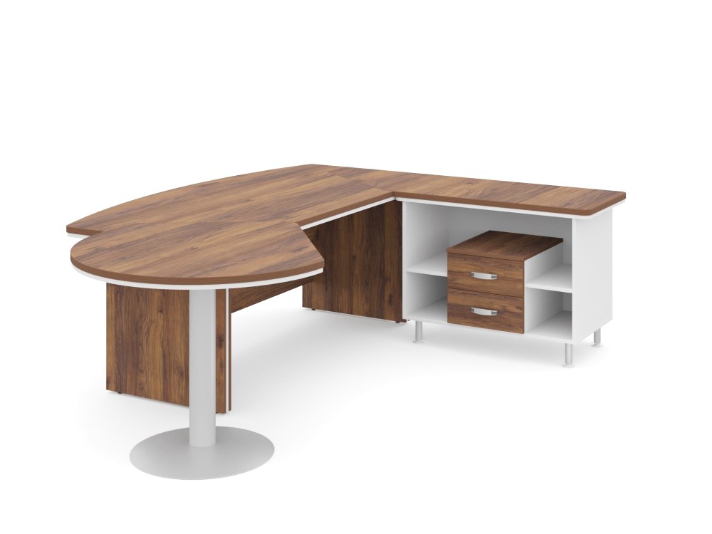Стол руководителя R угловой с брифингом и тумбой 2 ящика