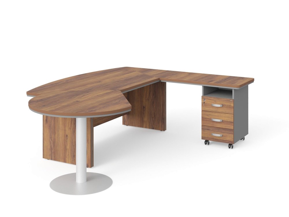 Стол руководителя R угловой с брифингом и тумбой 3 ящика