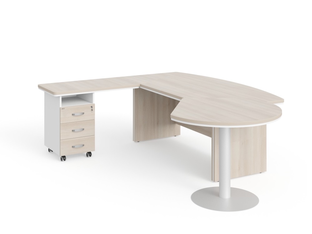Стол руководителя L угловой с брифингом и тумбой 3 ящика RB073-255X200L-A-W купить по цене 98280 руб. в Санкт-Петербурге — интернет магазин РЕМИ