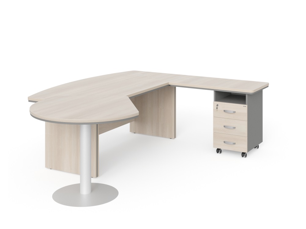Стол руководителя R угловой с брифингом и тумбой 3 ящика