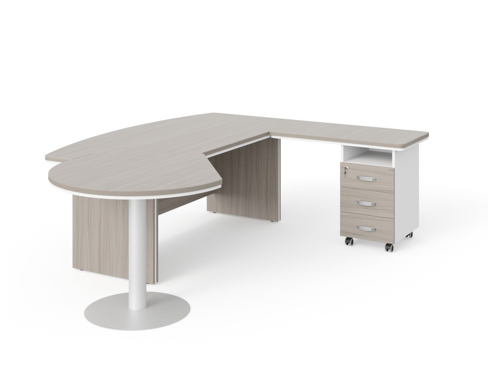 Стол руководителя R угловой с брифингом и тумбой 3 ящика