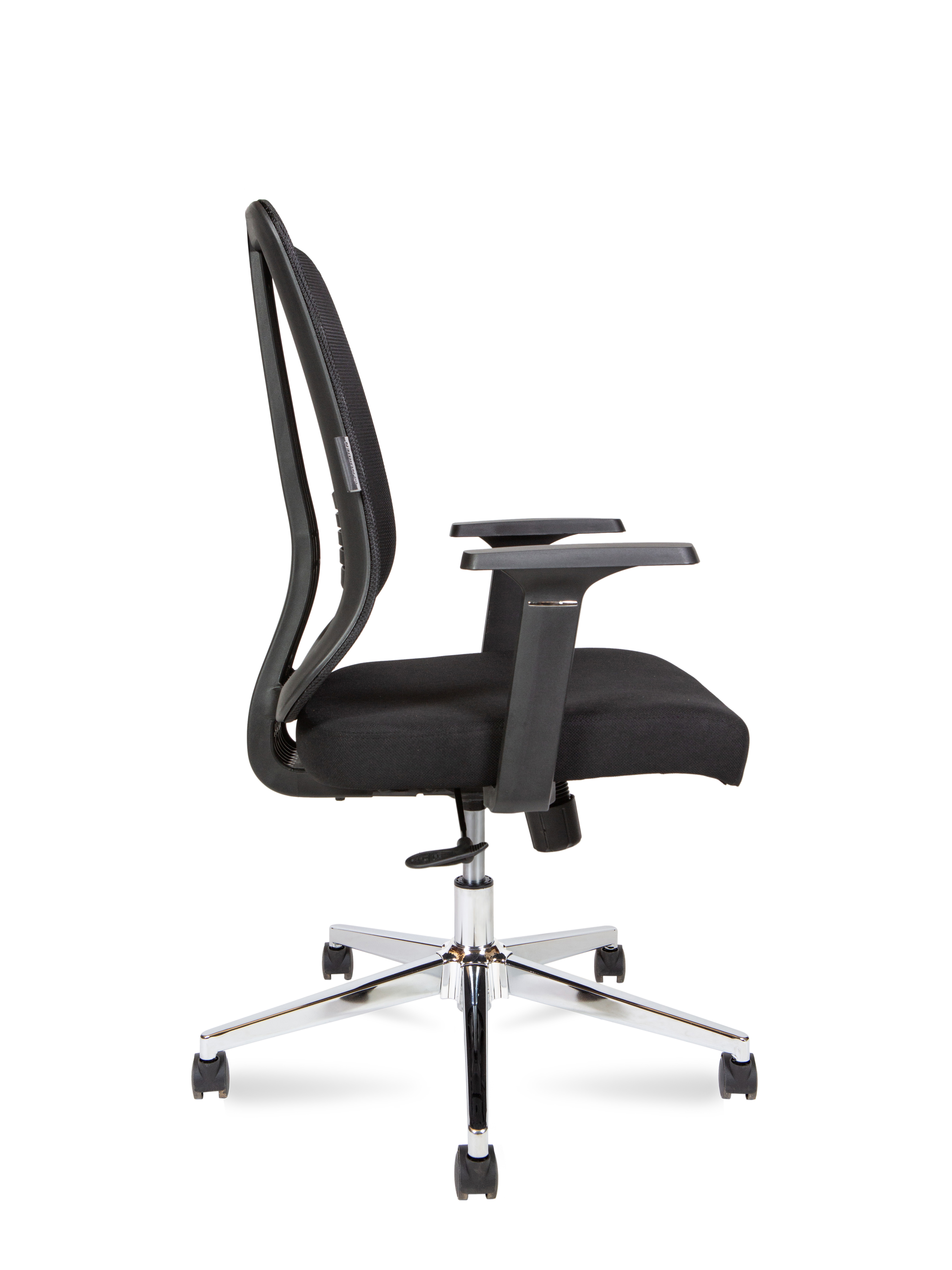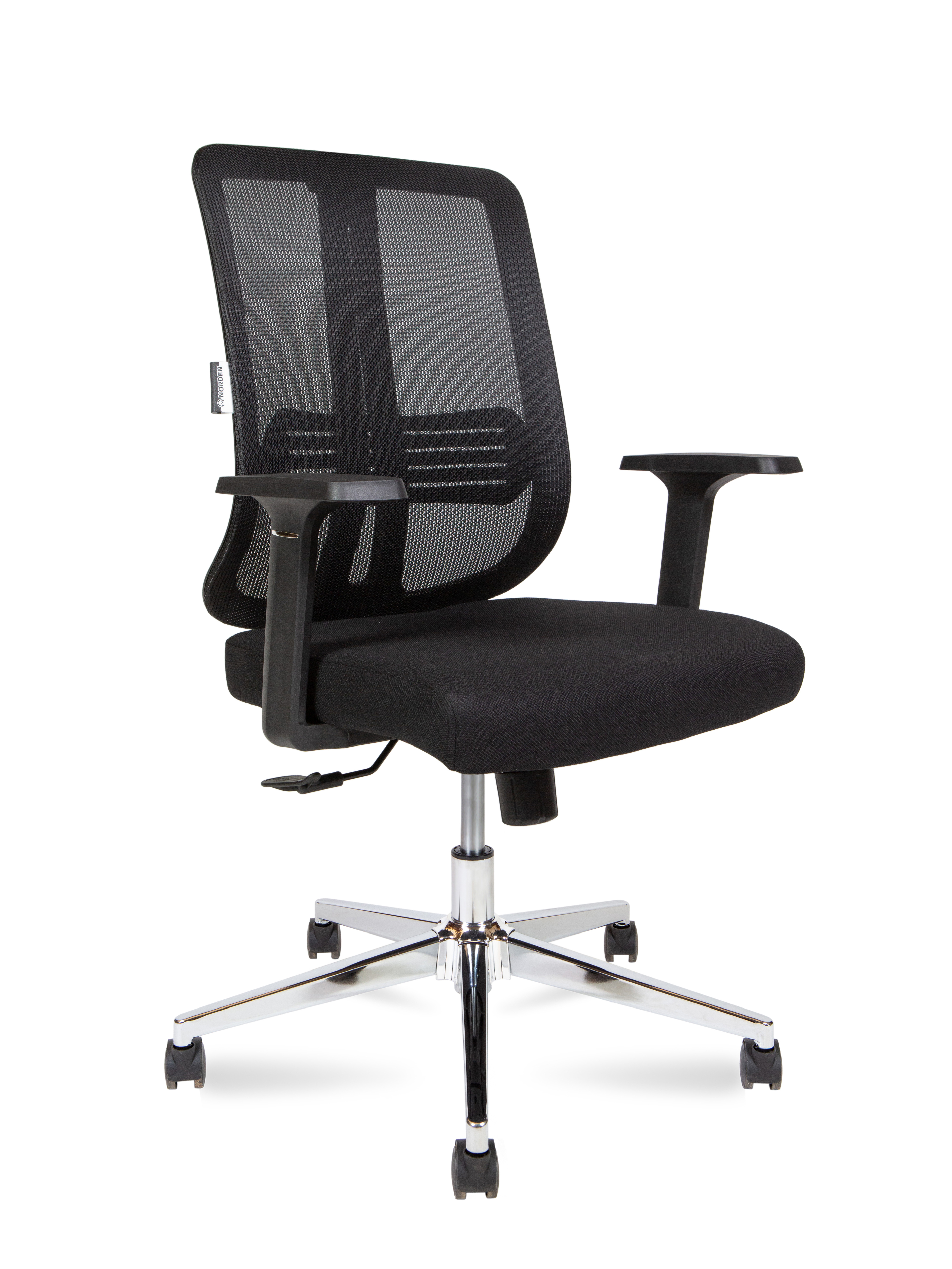 Офисное кресло со средней спинкой, спинка сетка, сиденье формованное ПУ, Пластиковый подлокотник с регулеровкой по высоте, механизм Топ-Ган с фиксацией в одном положении, Хромированная база, ролики ПУ. Максимальная нагрузка до 120 кг. Гарантия один год.