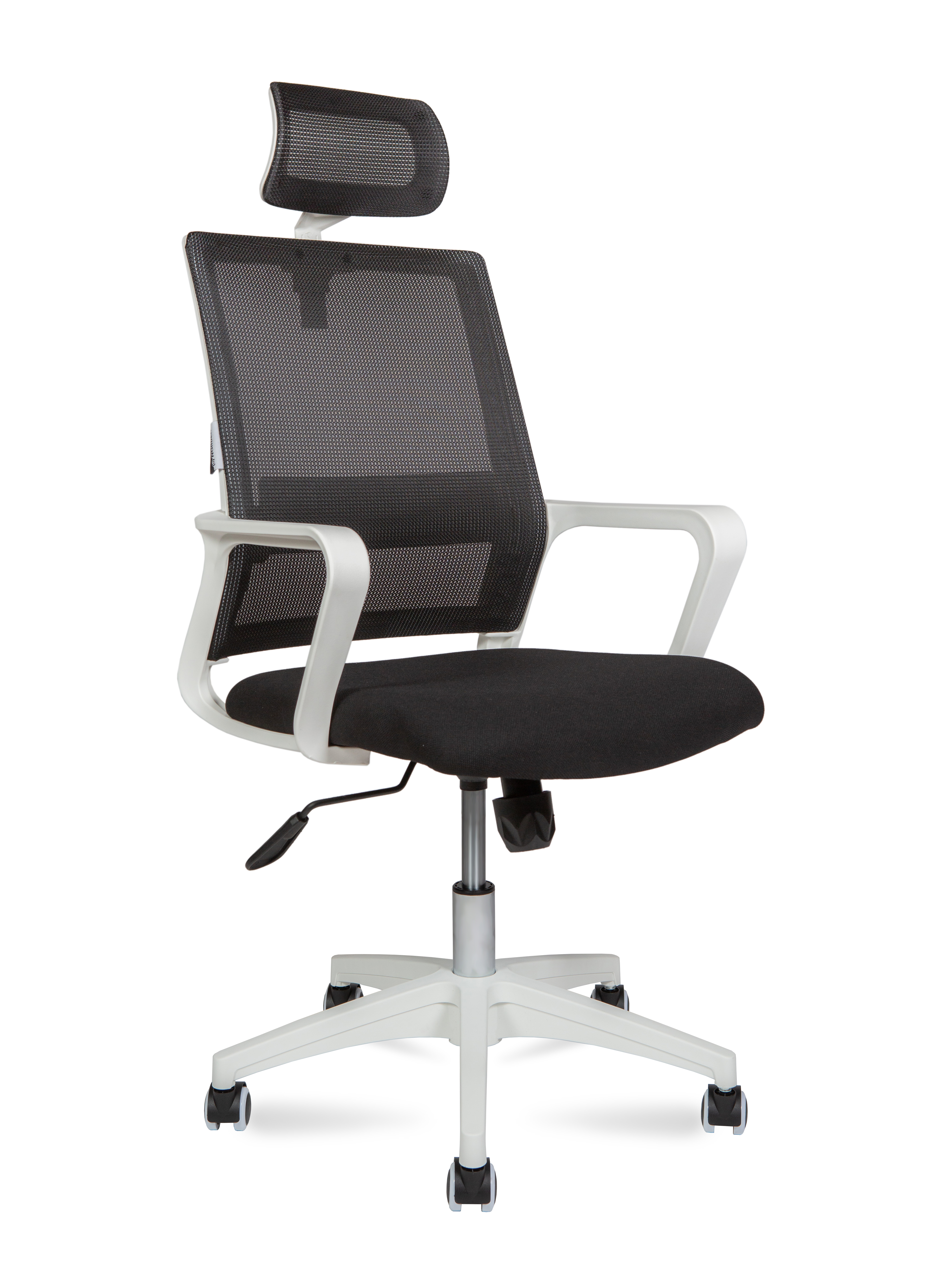 Кресло офисное / Бит / белый пластик / черная сетка / черная ткань