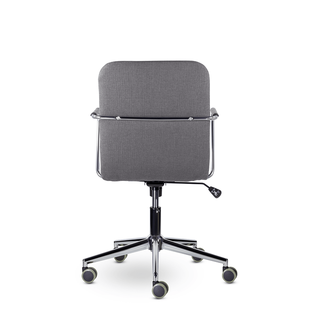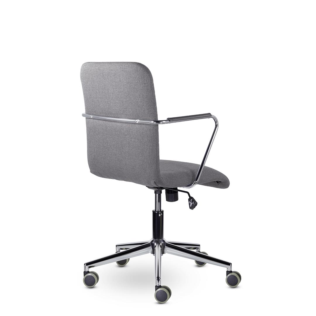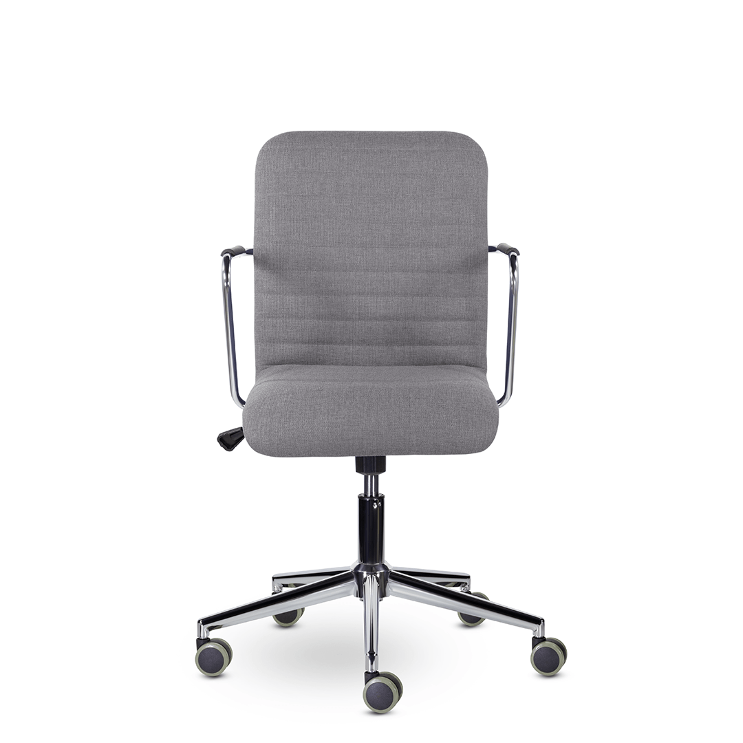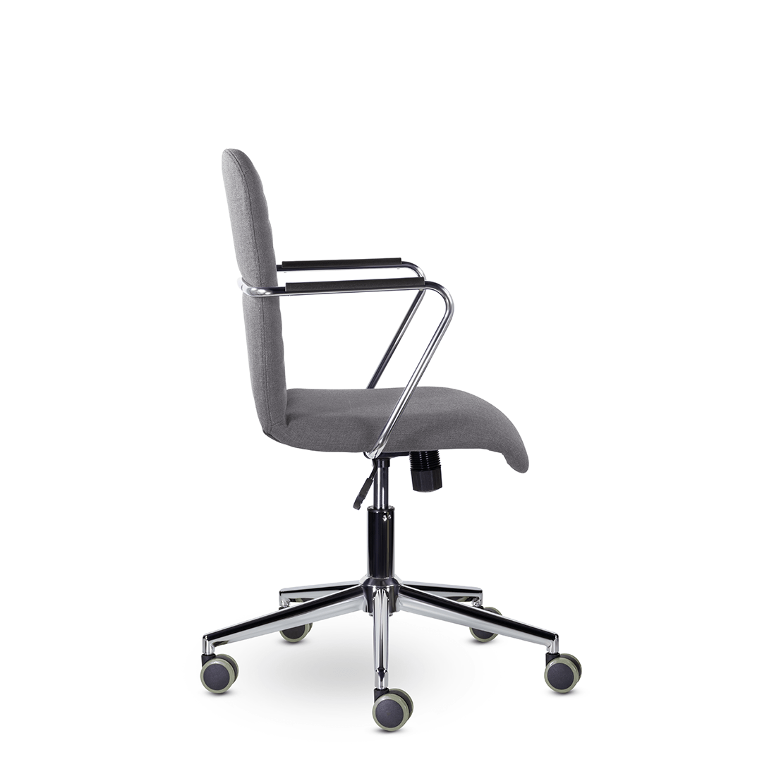 Уникальный каркас из металла и узкие хромированные подлокотники с небольшими пластиковыми накладками придают конструкции легкость и прочность. Горизонтальные строчки на спинке подчеркивают элегантный и современный вид. Хромированная крестовина выдерживает до 120 кг.