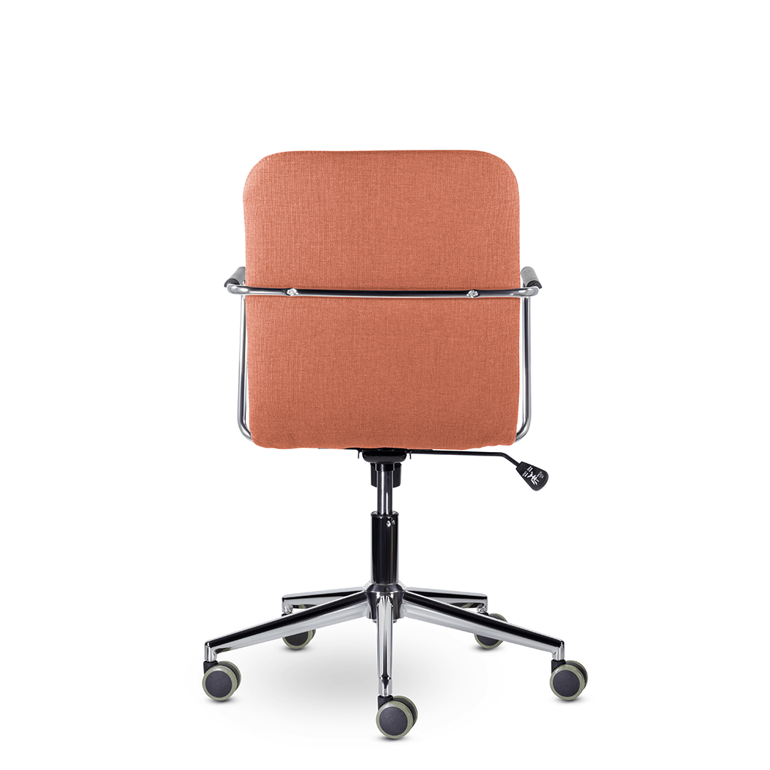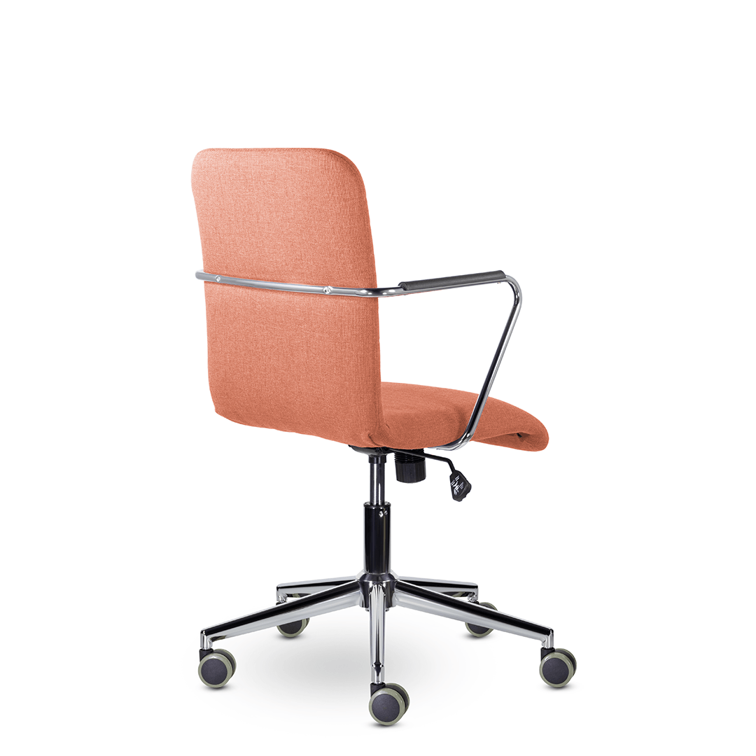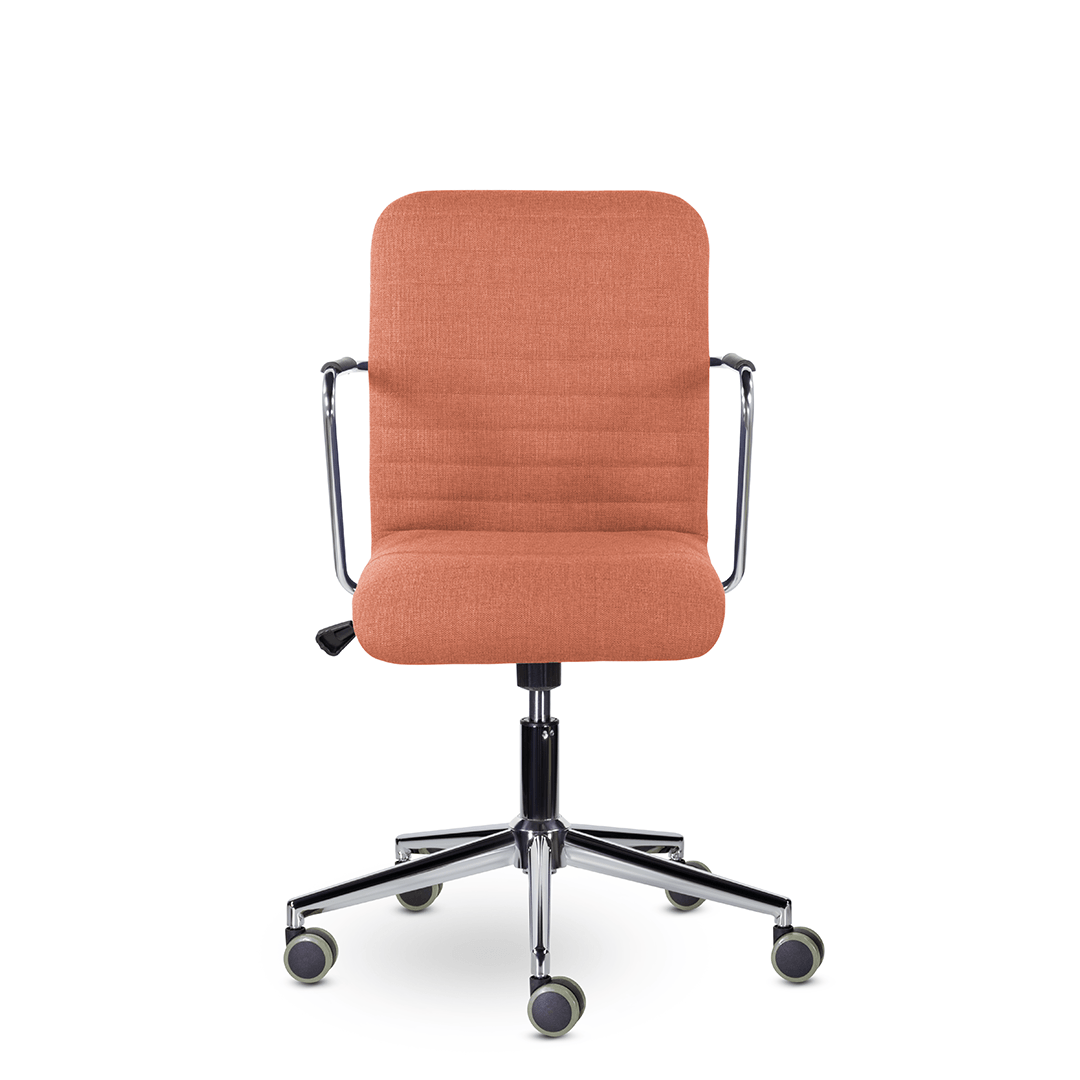 Уникальный каркас из металла и узкие хромированные подлокотники с небольшими пластиковыми накладками придают конструкции легкость и прочность. Горизонтальные строчки на спинке подчеркивают элегантный и современный вид. Хромированная крестовина выдерживает до 120 кг.