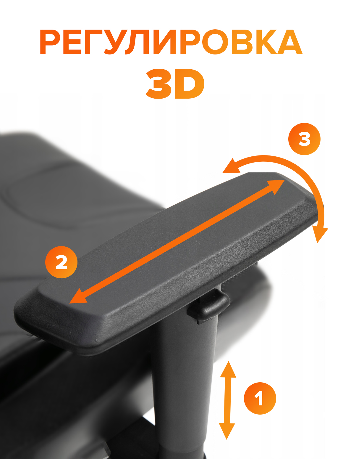 Пластиковые, регулируемые 3D. Ход подлокотника 70мм