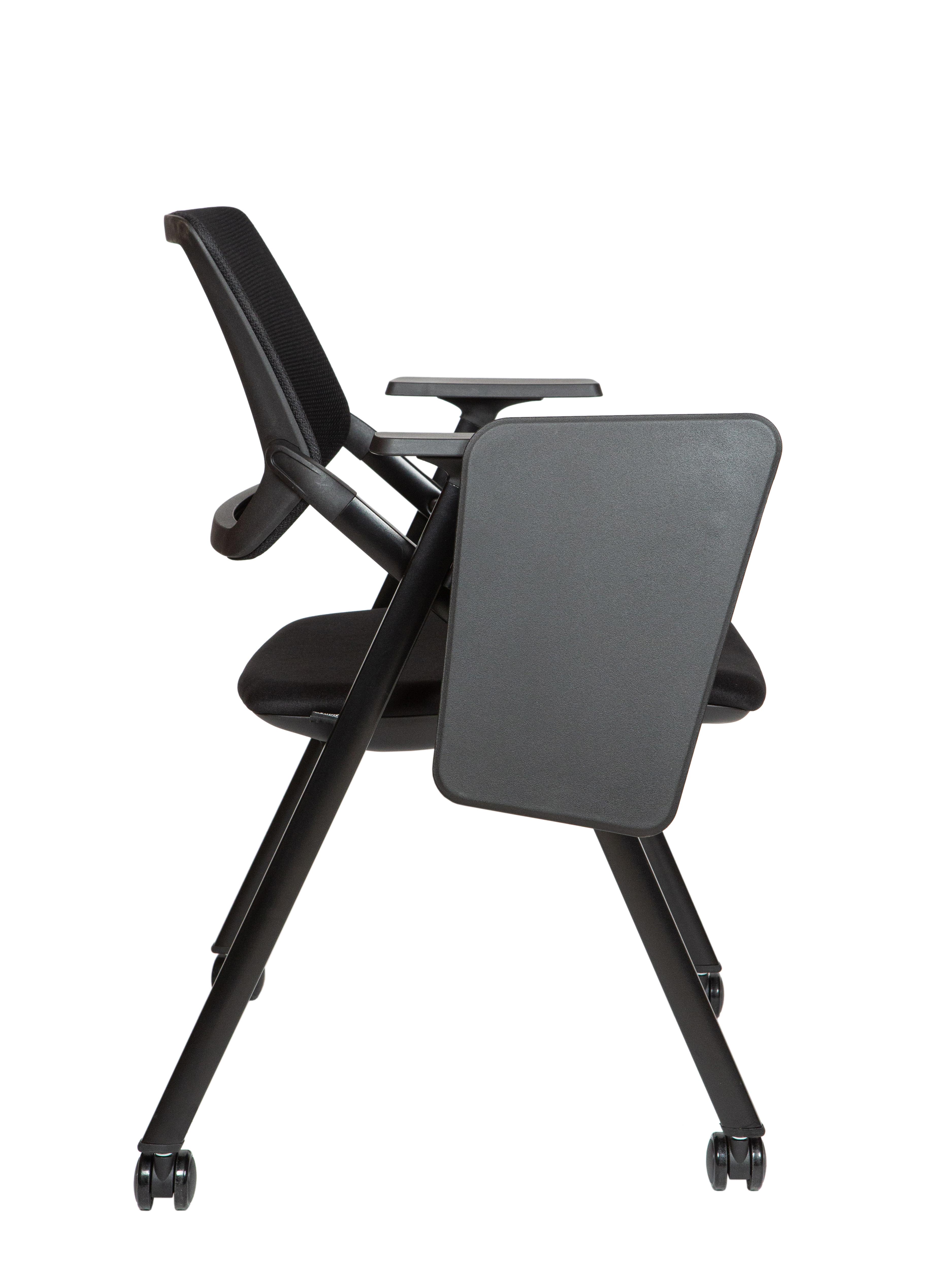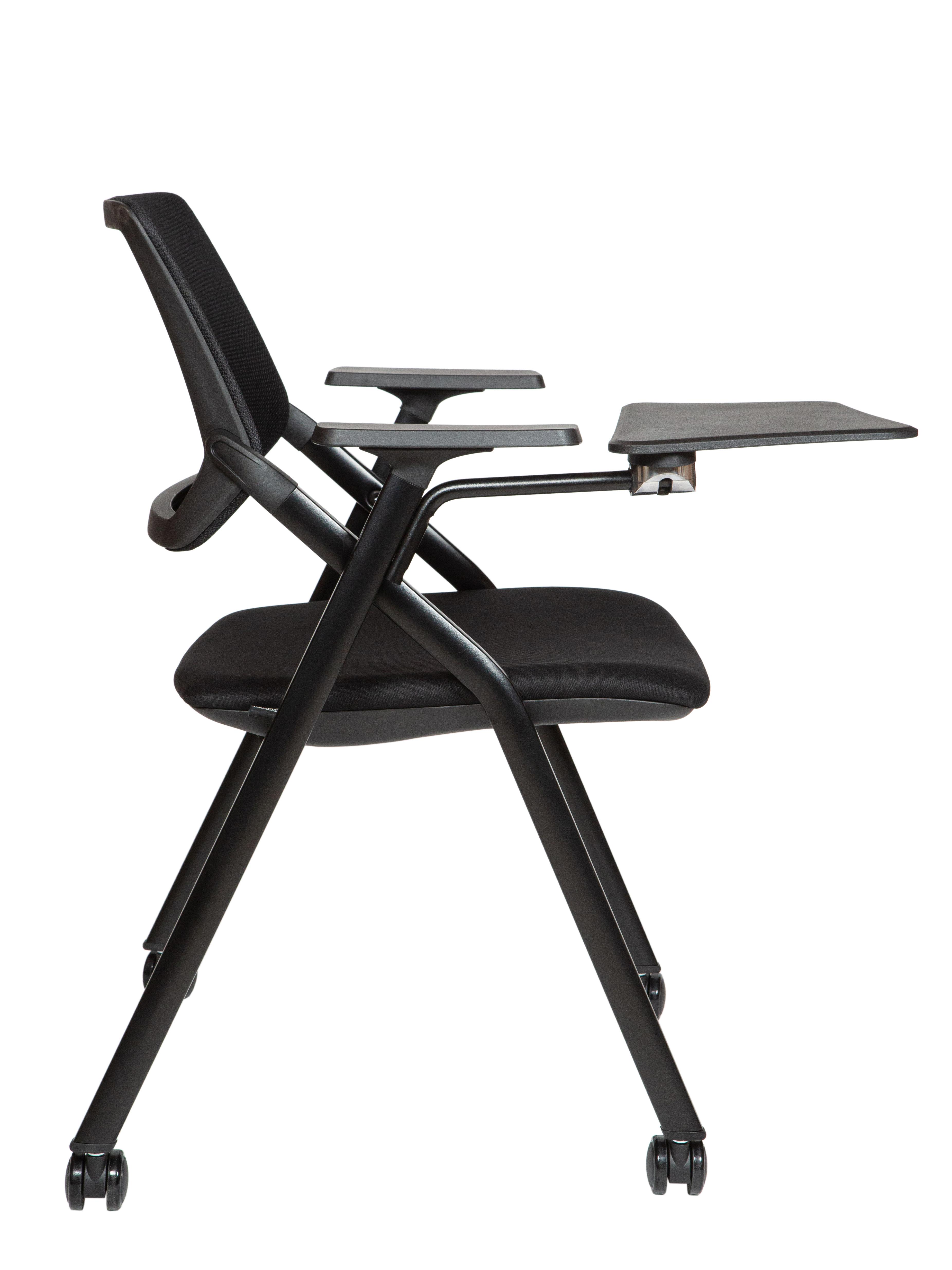 Учебный стул Step — удобное и практичное решение для образовательных пространств, тренинговых залов и конференц-комнат. Стул имеет складную конструкцию с прочным металлическим кронштейном X-образной формы, что позволяет экономить место при хранении. Пюпитр с поворотной конструкцией на 190° делает его удобным для работы с ноутбуком, письмом или чтением. Эргономичная сетчатая спинка обеспечивает вентиляцию, а анатомическое сиденье с высокой эластичностью комфортно даже при длительном использовании. Доступен в трёх вариантах: на ножках, на ножках с пюпитром, на колесиках с пюпитром. Нагрузка 100 кг.