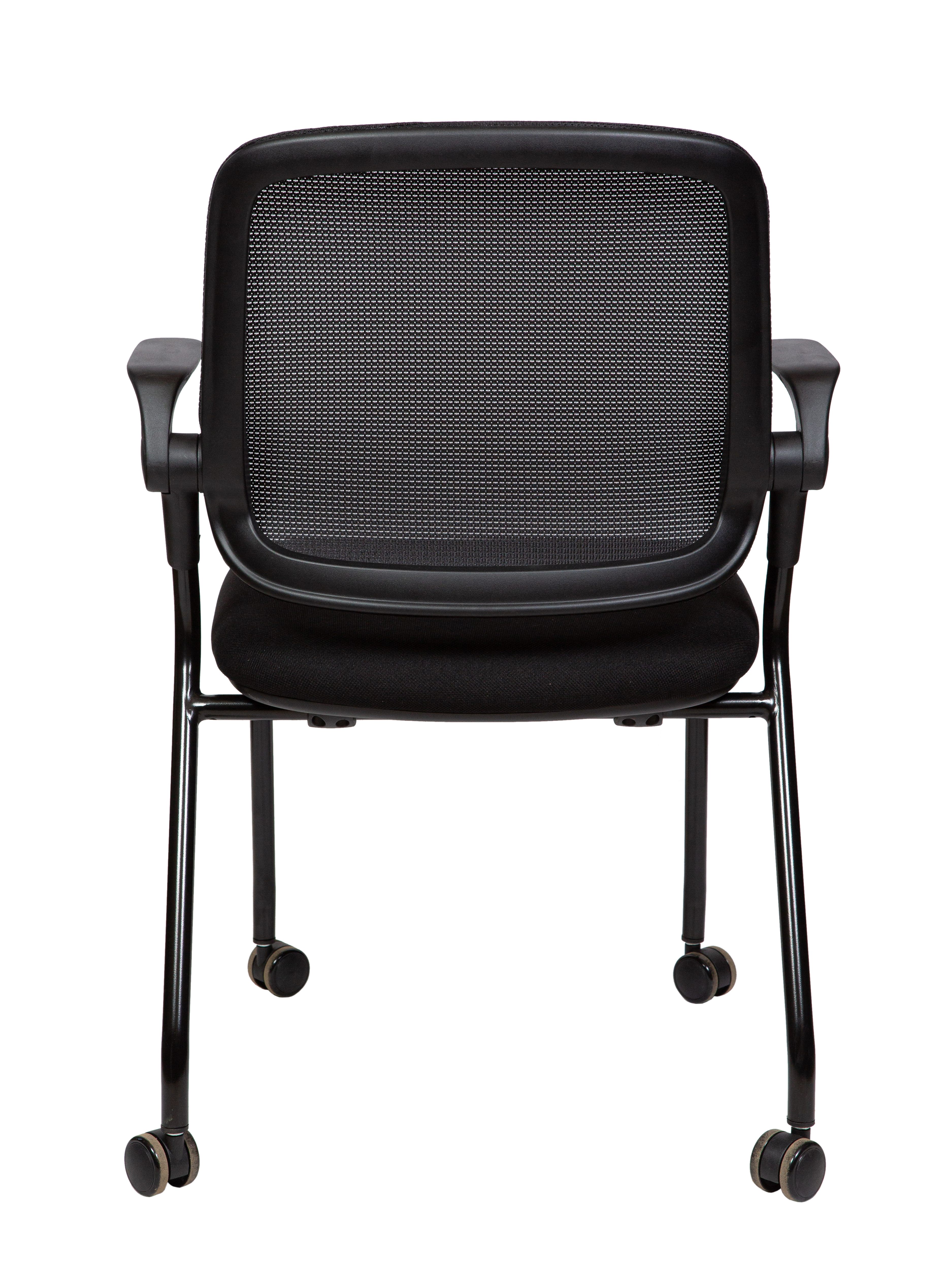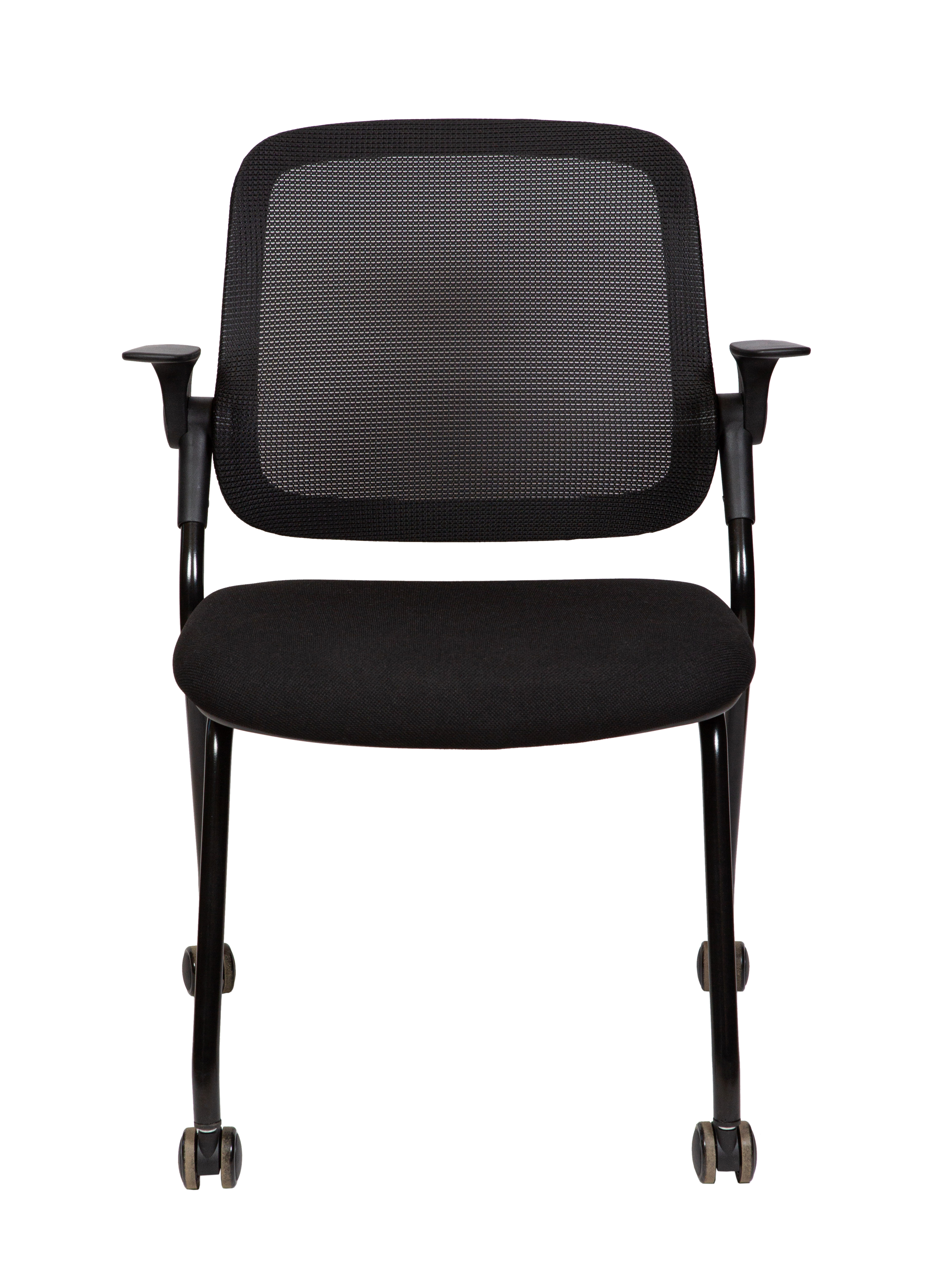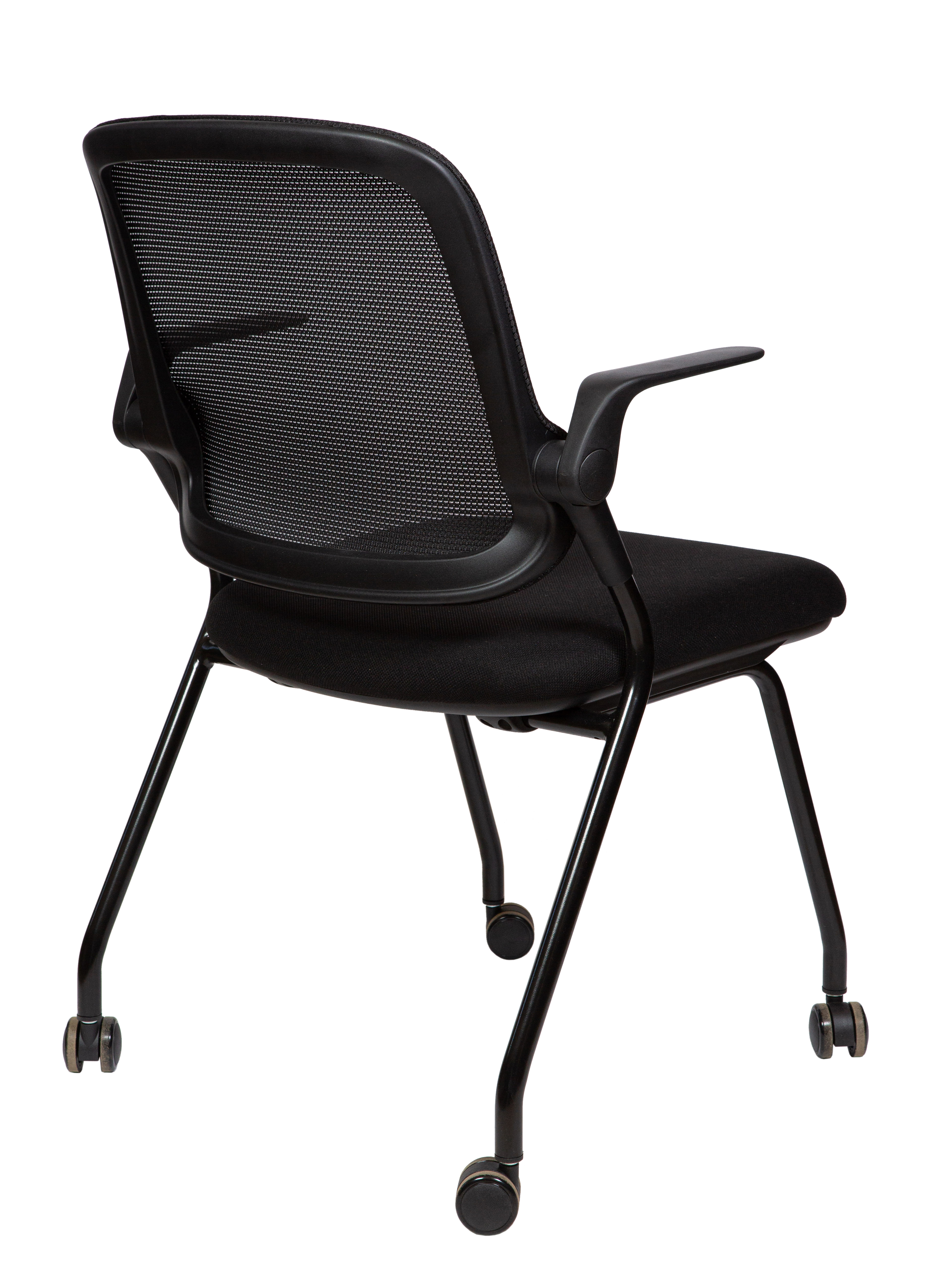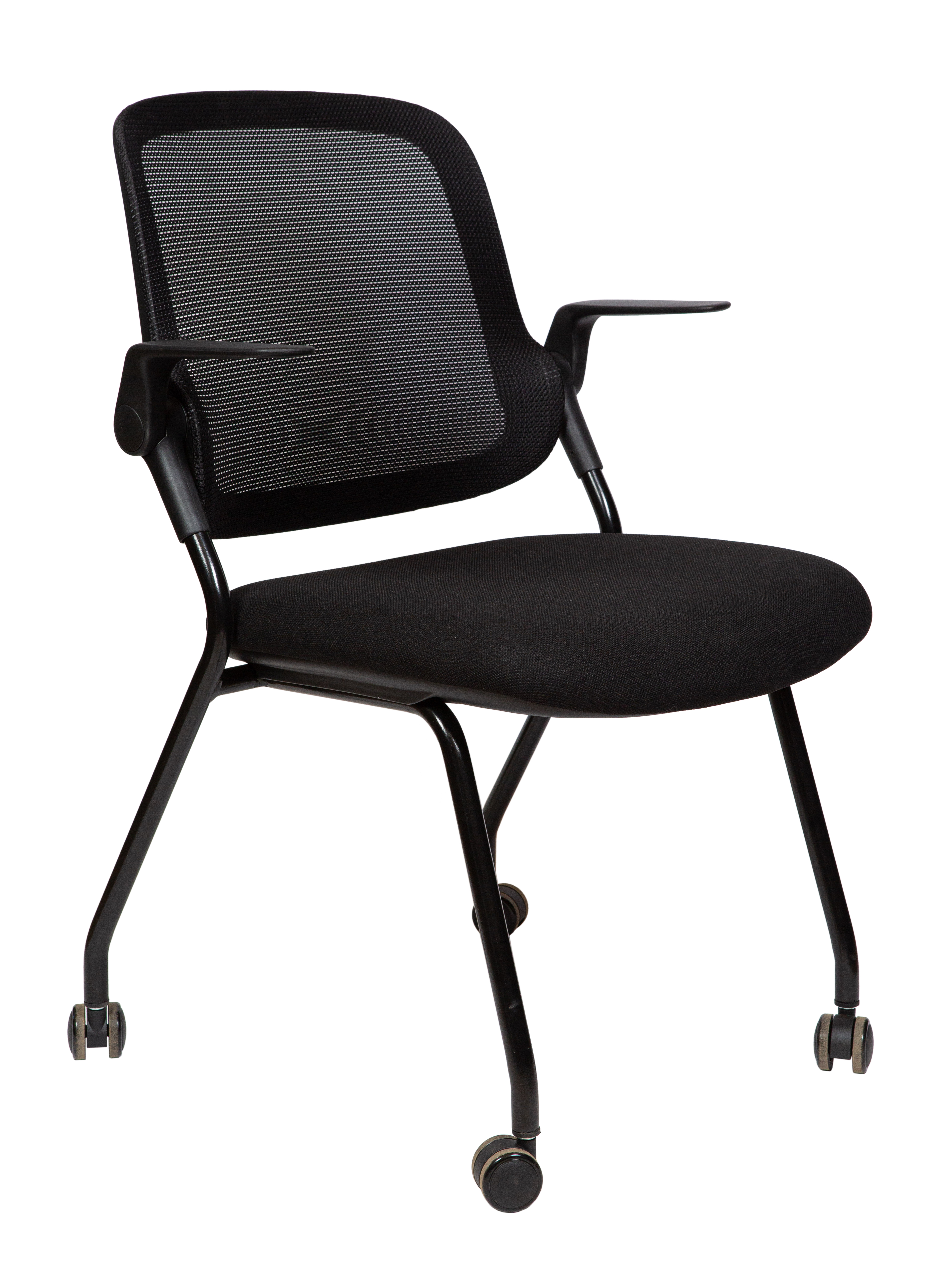 Современный офисный стул для учебных помещений и зон ожиданий. Пластик. Сиденье ткань, Спинка сетка. Цвет пластика черный. Основание металл, черный. Подлокотники поднимаются. Стул выдерживает нагрузку до 90 кг. Гарантия год.