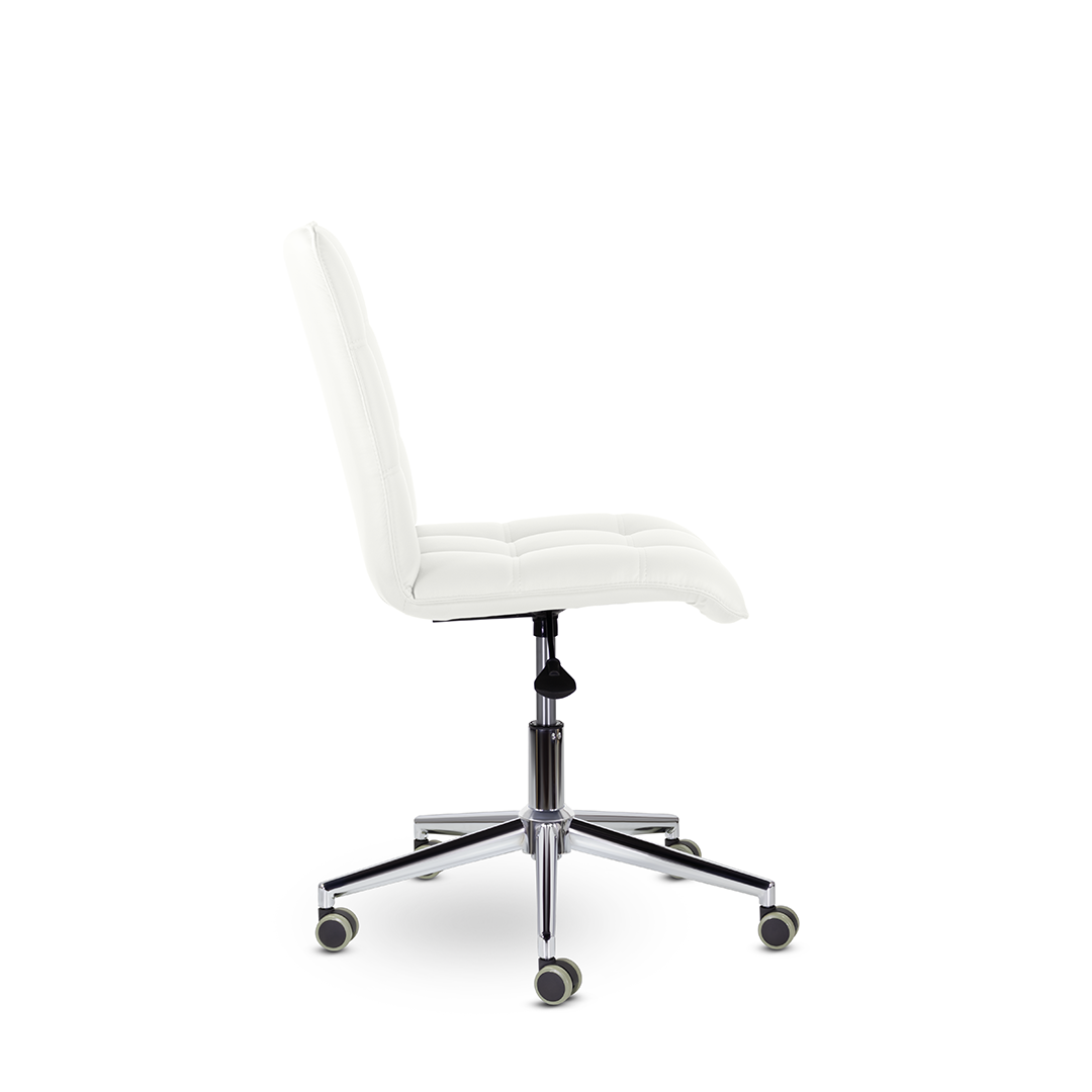 Кресло оператора уникальной формы. Жесткий каркас без подлокотников идеально впишется даже в небольшое пространство, а дизайн хромированной крестовины с узкими лучами придадут креслу современный внешний вид.