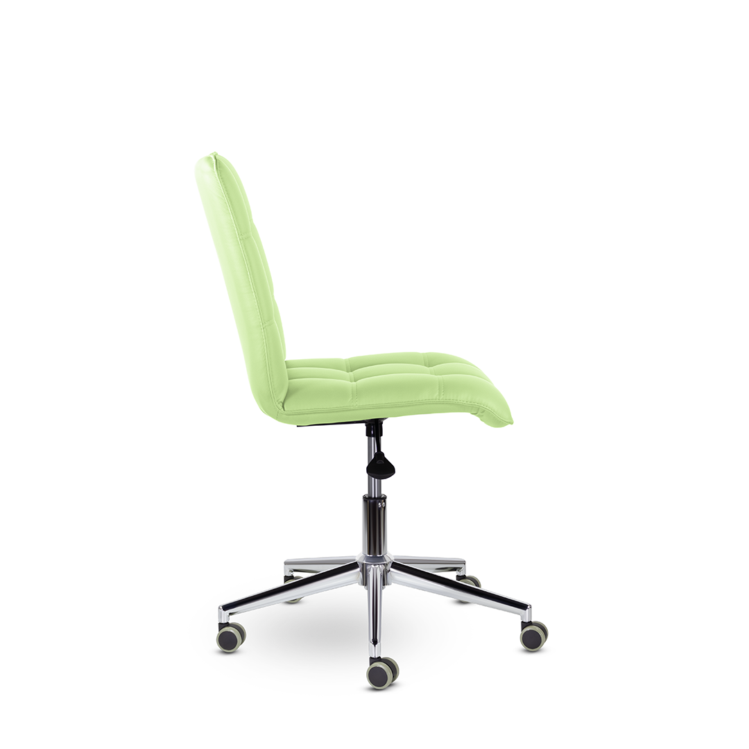 Кресло оператора уникальной формы. Жесткий каркас без подлокотников идеально впишется даже в небольшое пространство, а дизайн хромированной крестовины с узкими лучами придадут креслу современный внешний вид.