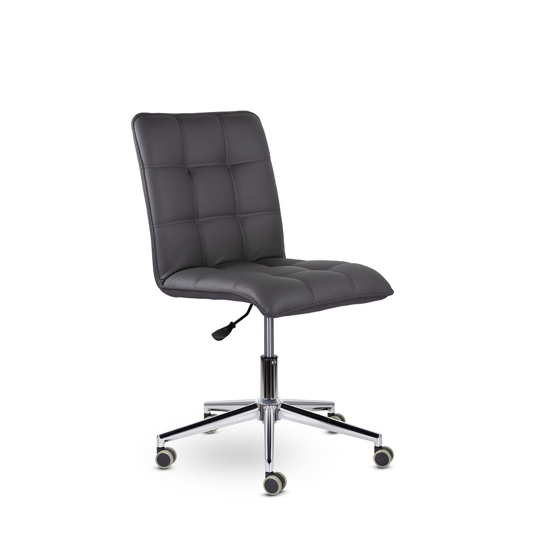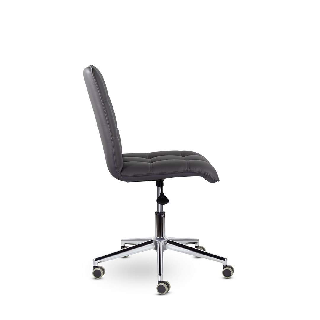 Кресло оператора уникальной формы. Жесткий каркас без подлокотников идеально впишется даже в небольшое пространство, а дизайн хромированной крестовины с узкими лучами придадут креслу современный внешний вид.