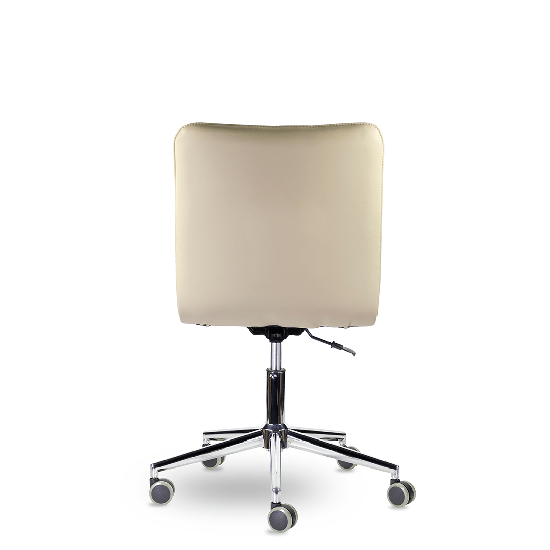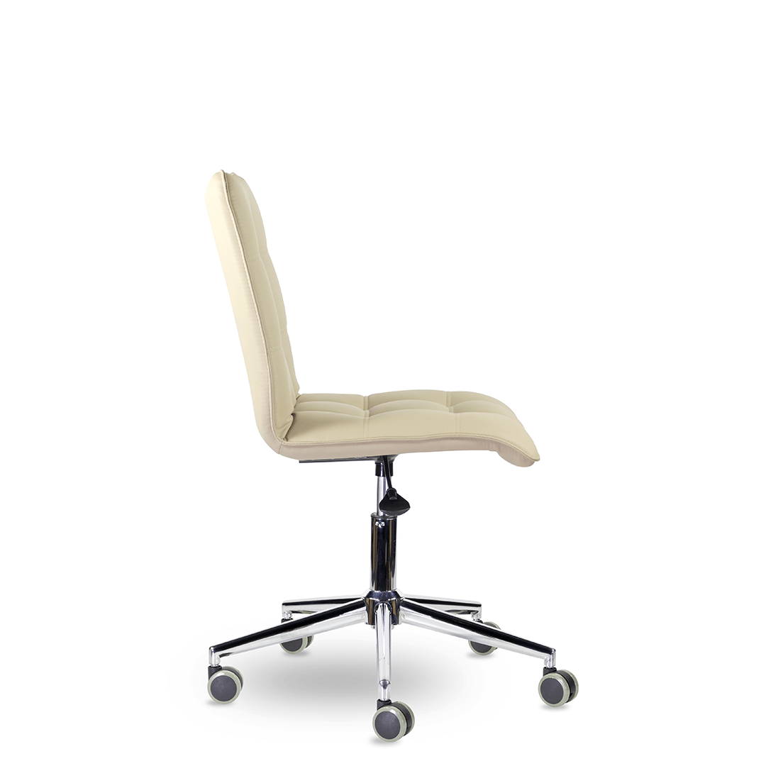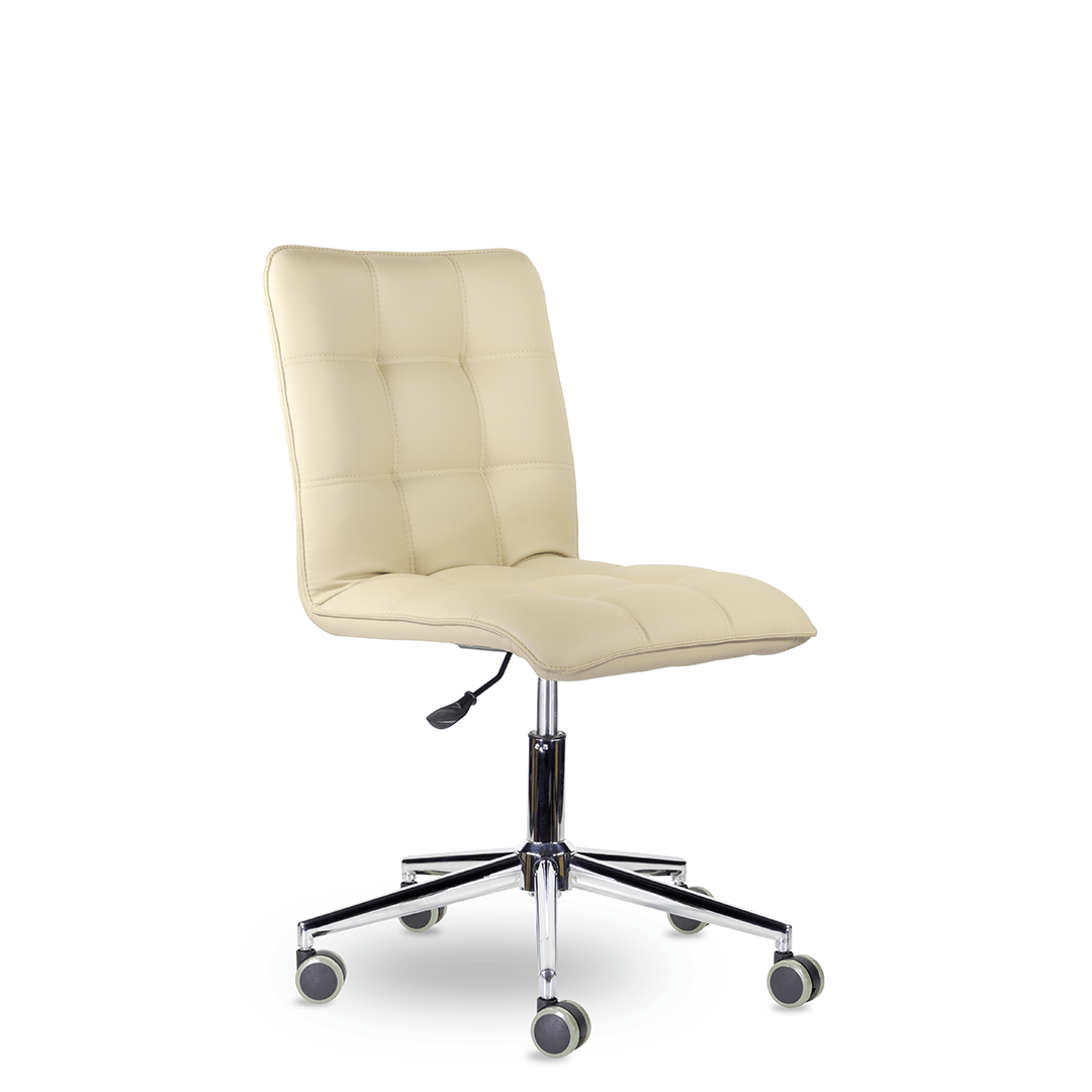 Кресло оператора уникальной формы. Жесткий каркас без подлокотников идеально впишется даже в небольшое пространство, а дизайн хромированной крестовины с узкими лучами придадут креслу современный внешний вид.