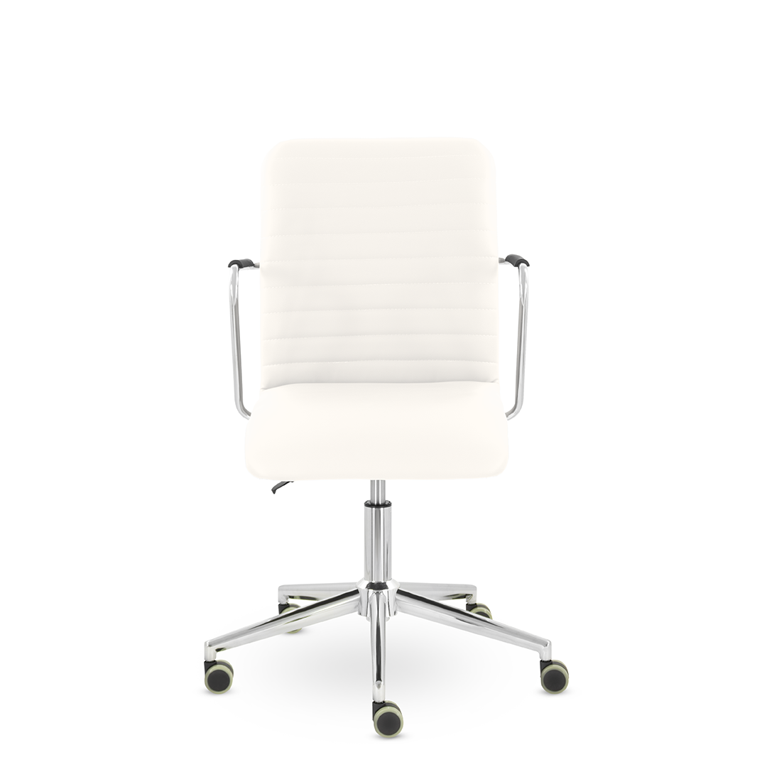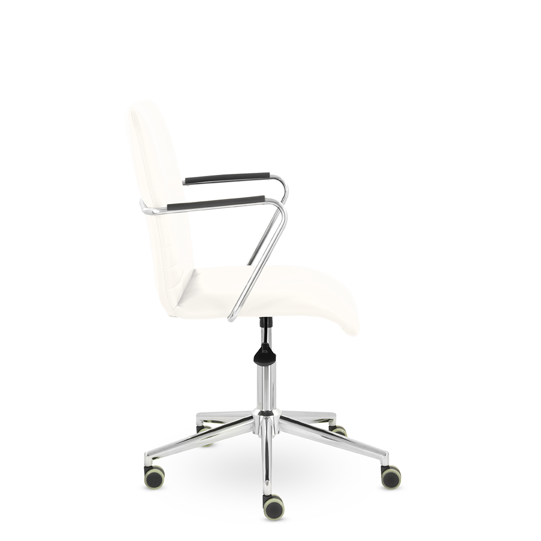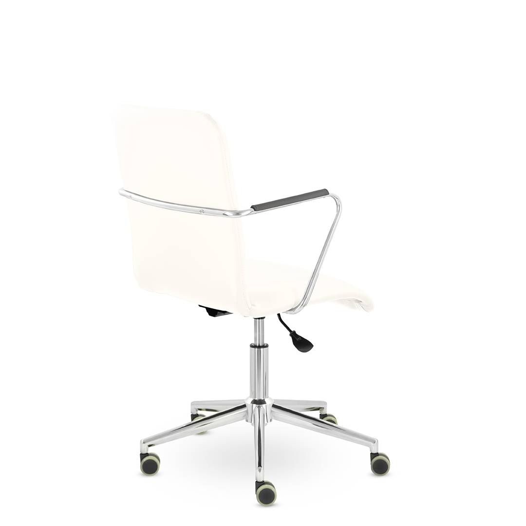 Уникальный каркас из металла и узкие хромированные подлокотники с небольшими пластиковыми накладками придают конструкции легкость и прочность. Горизонтальные строчки на спинке подчеркивают элегантный и современный вид.