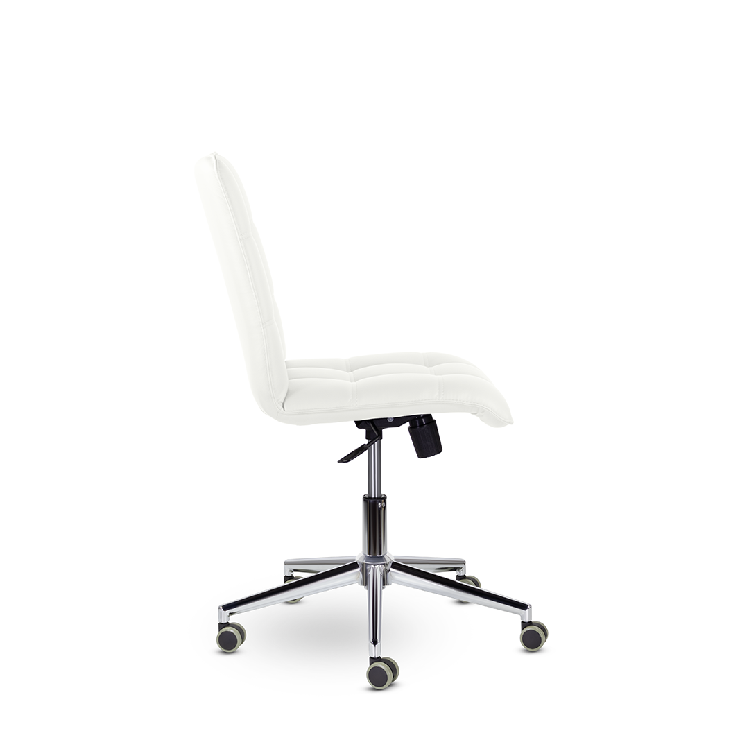 Дизайн кресла дополнен хромированной крестовиной с узкими лучами, что придаёт ему современный и технологичный вид. Такая конструкция не только выглядит стильно, но и обеспечивает высокую прочность и устойчивость. Оно идеально впишется даже в небольшое пространство, не уступая по функциональности более крупным моделям.