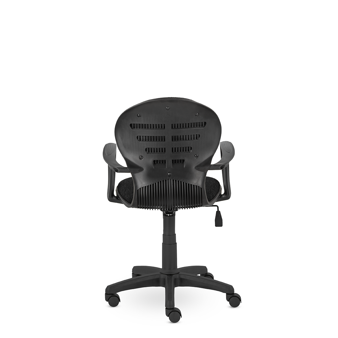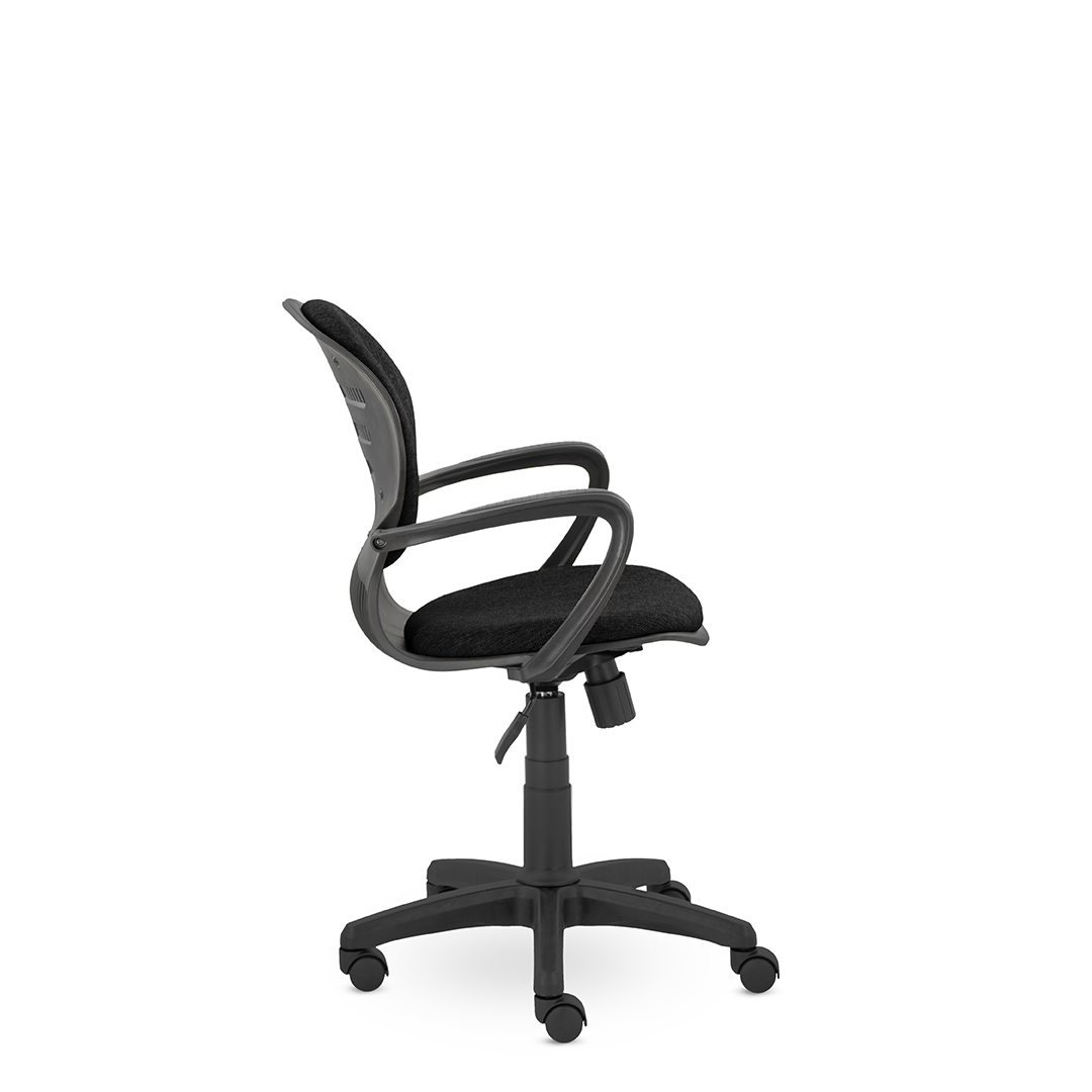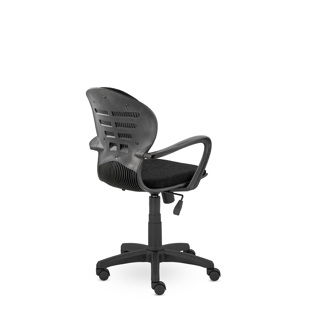 Операторское кресло с интересным дизайном, каркасом и выраженной эргономикой спинки. Подлокотники мягко переходят к сидению. Кресло украсит любой открытый небольшой офис