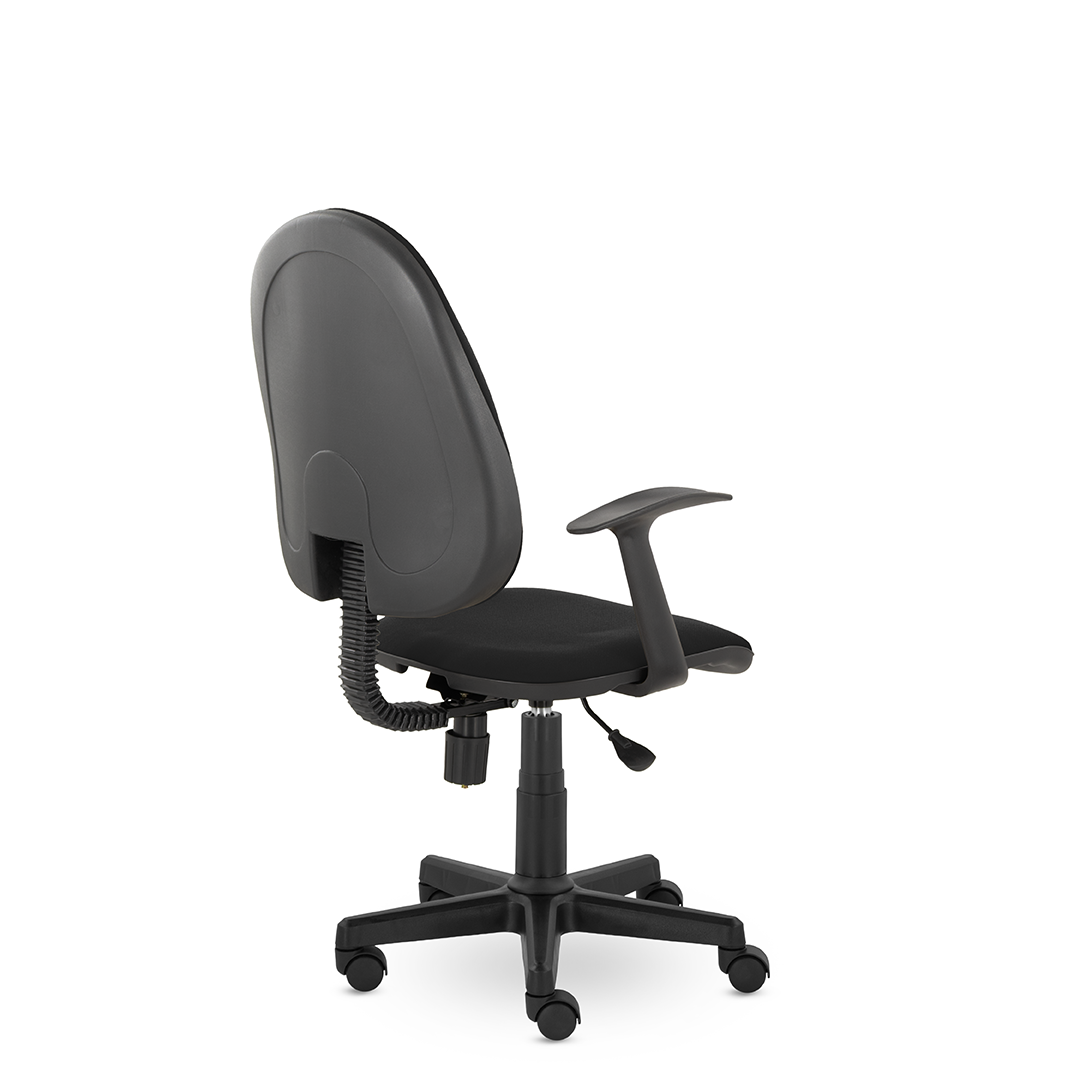 Кресло оператора имеет увеличенные мягкие подушки на спинке и сиденье, обитые износостойкой тканью. Удобные пластиковые подлокотники Т-образные подлокотники и механизм, благодаря которому можно регулировать угол наклона, высоту спинки и глубину сиденья.