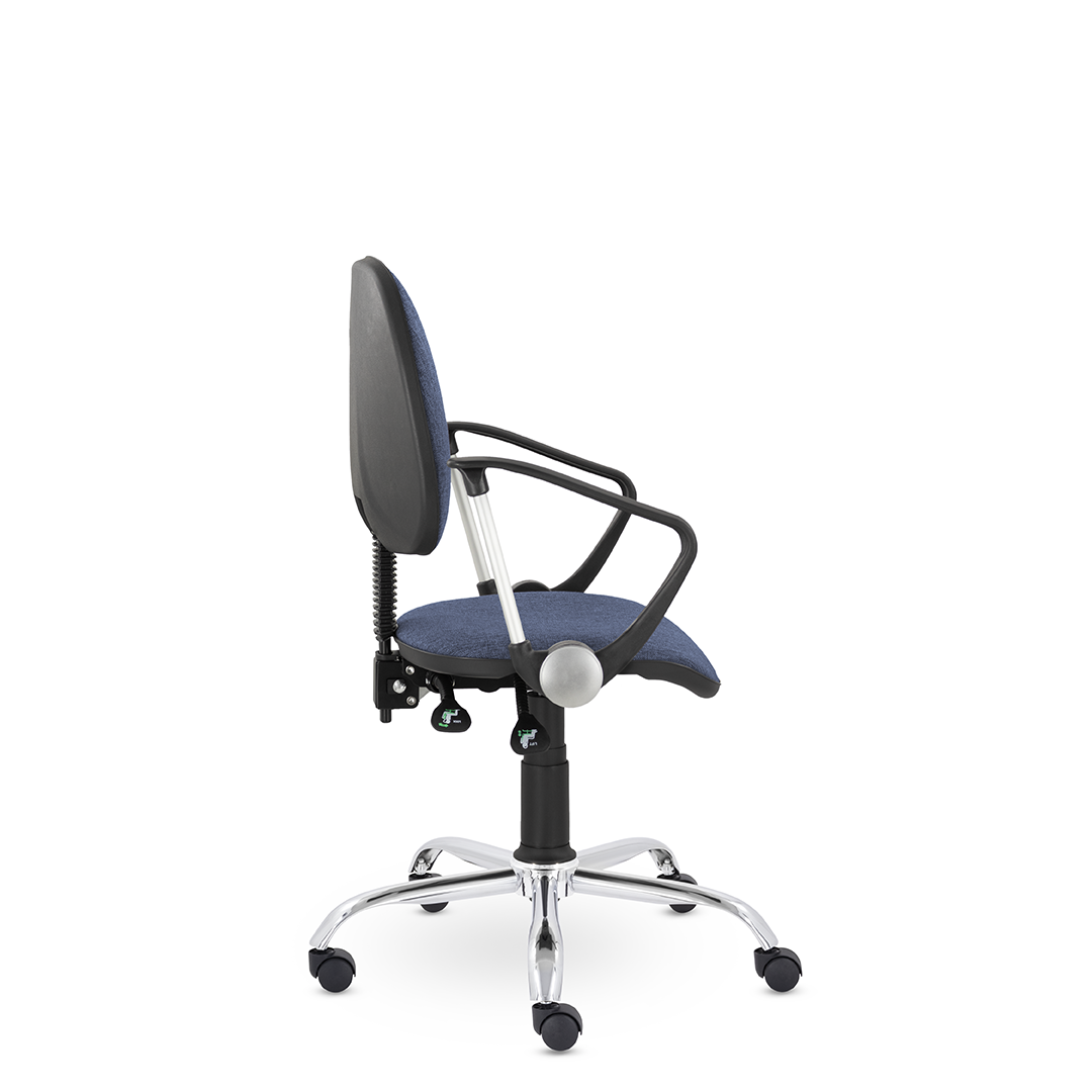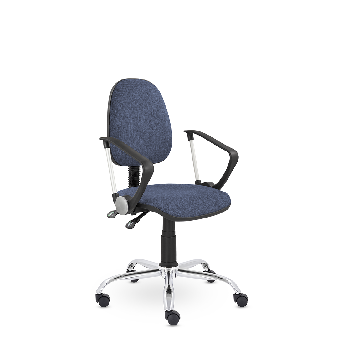 Данная модель отлично подойдет для небольших офисов. Кресло обито износостойкой тканью, имеет широкое сидение и удобные стильные подлокотники, которые сочетаются с хромированным основанием. Данную модель можно подстроить по высоте к любому столу.