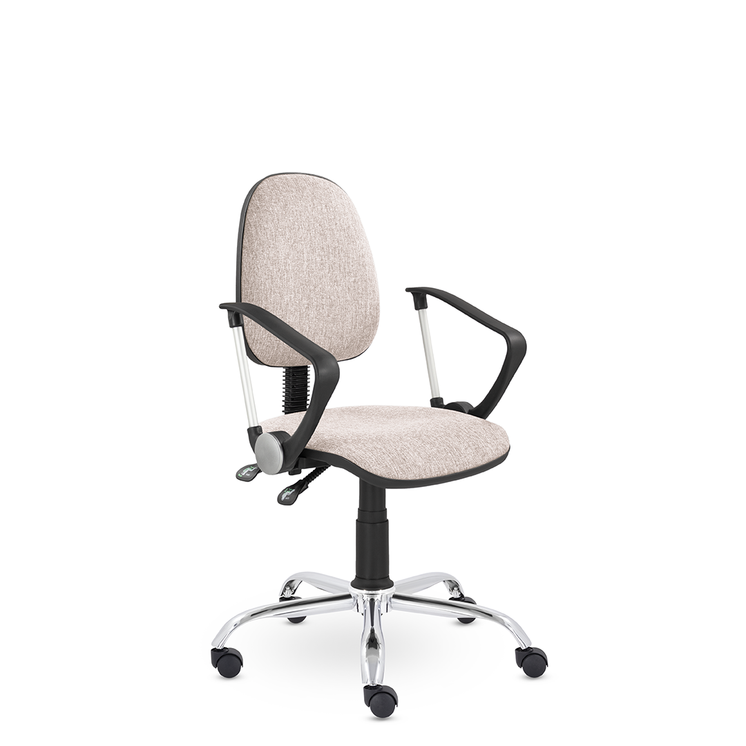 Данная модель отлично подойдет для небольших офисов. Кресло обито износостойкой тканью, имеет широкое сидение и удобные стильные подлокотники, которые сочетаются с хромированным основанием. Данную модель можно подстроить по высоте к любому столу.