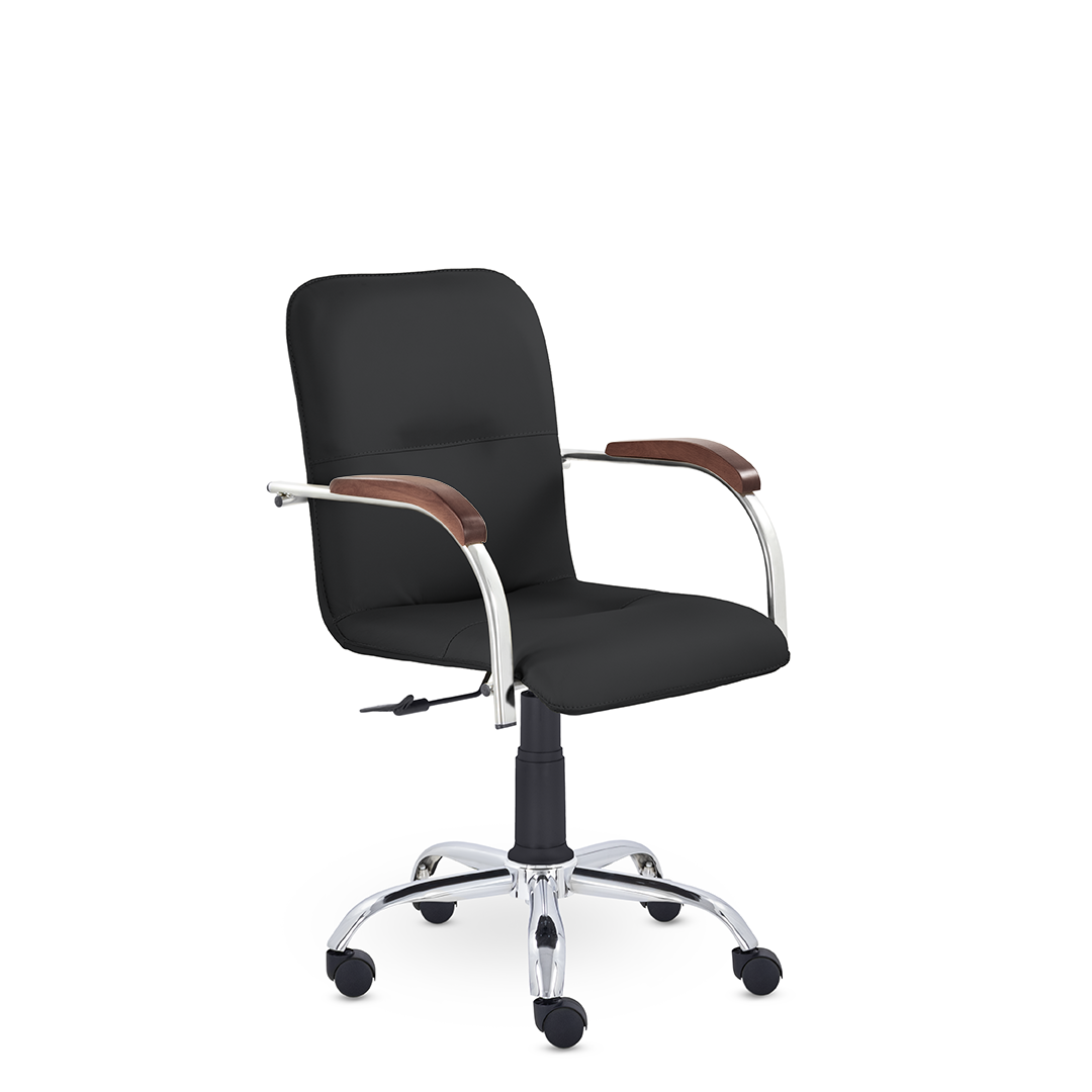Улучшенная комплектация стула Самба включает горизонтальные прострочки, соединяющие спинку и сиденье, что придает креслу элегантный вид. Удобные накладки обеспечивают комфортную поддержку рук и способствуют их расслаблению.