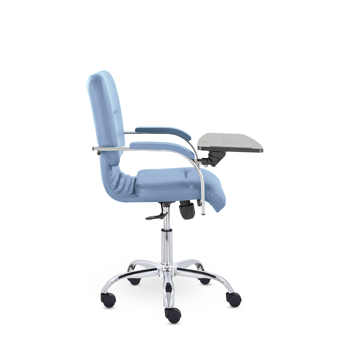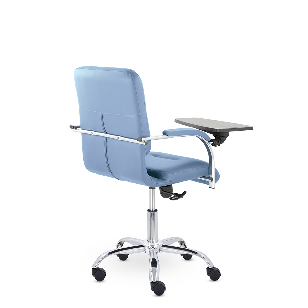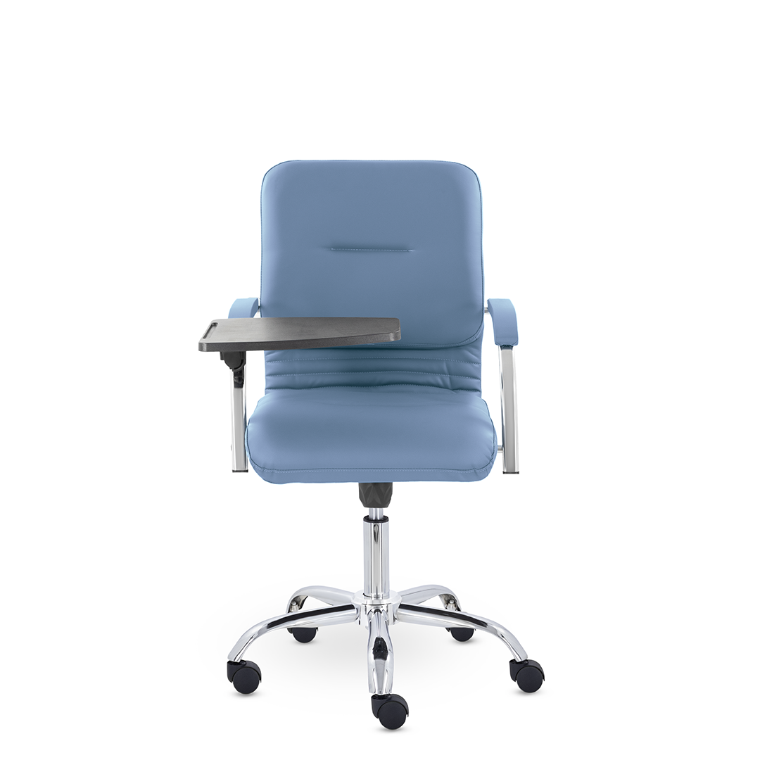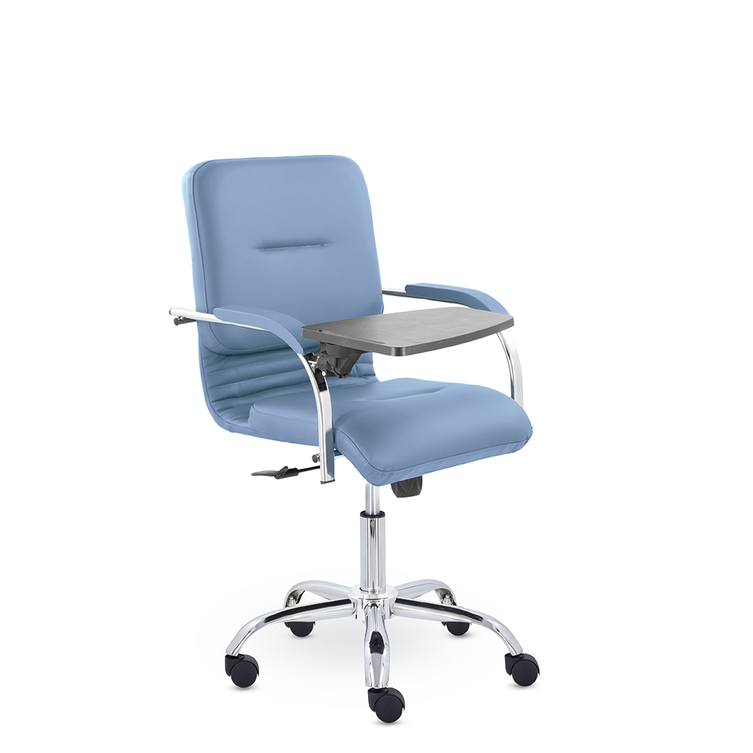 Улучшенная комплектация кресла включает горизонтальные прострочки, соединяющие спинку и сиденье, что придает креслу современный нео-классический стиль. Удобные накладки обеспечивают комфортную поддержку рук и способствуют их расслаблению. К креслу прилагается столик, выполненный из пластика. Модель отлично подойдет для конференц-залов, переговорных, актовых залов.