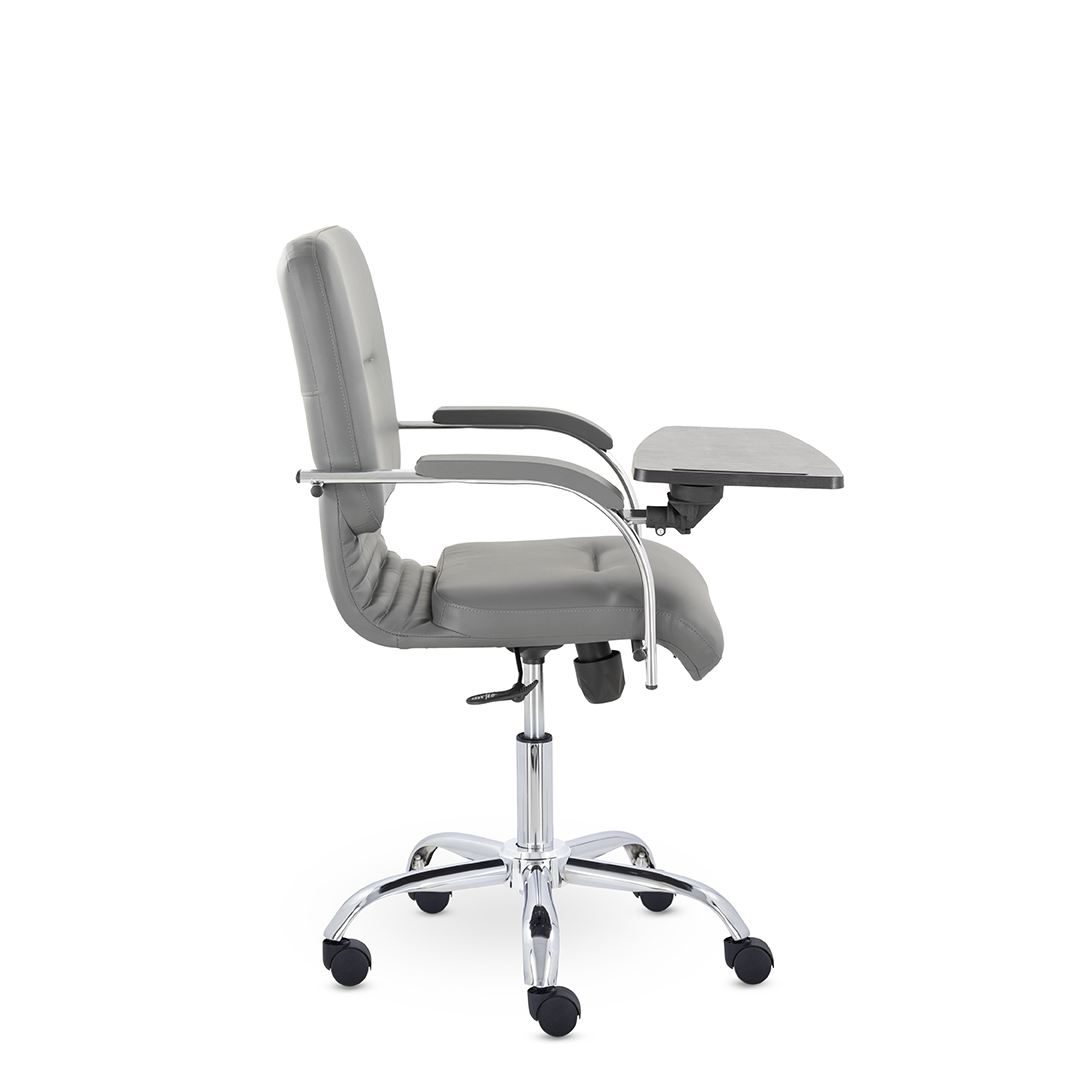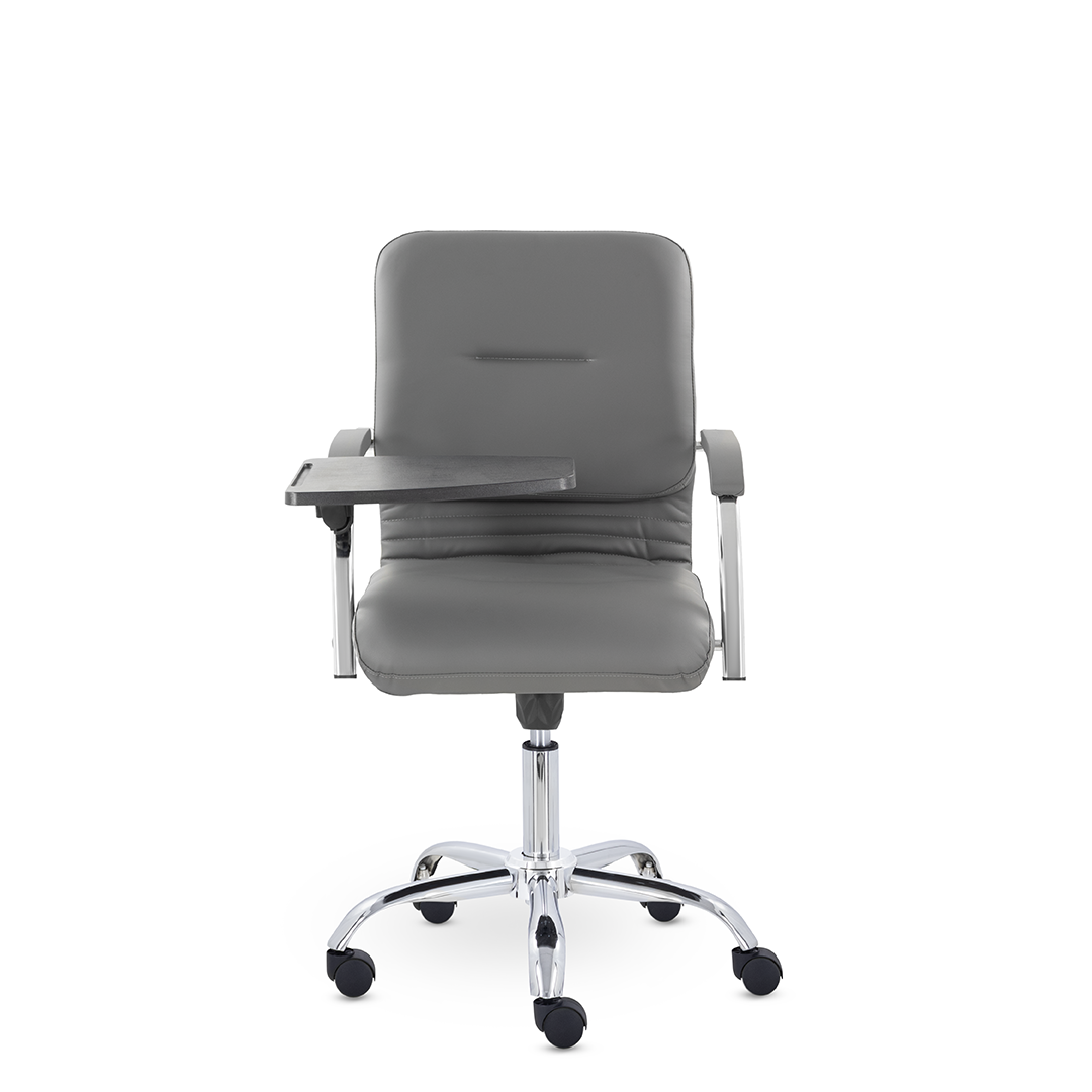 Улучшенная комплектация кресла включает горизонтальные прострочки, соединяющие спинку и сиденье, что придает креслу современный нео-классический стиль. Удобные накладки обеспечивают комфортную поддержку рук и способствуют их расслаблению. К креслу прилагается столик, выполненный из пластика. Модель отлично подойдет для конференц-залов, переговорных, актовых залов.