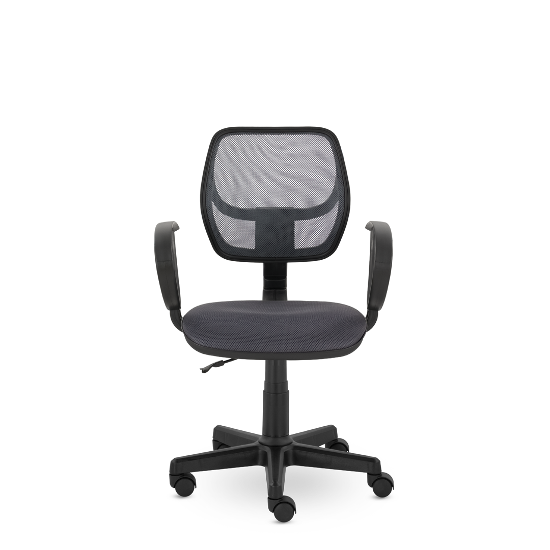 Компактное кресло для дома и офиса. Спинка, обтянутая прочной сеткой, имеет поясничный упор, обладает эффективной воздухопроницаемостью. Возможность регулировать угол наклона спинки и высоту кресла. Удобные подлокотники "Рондо".