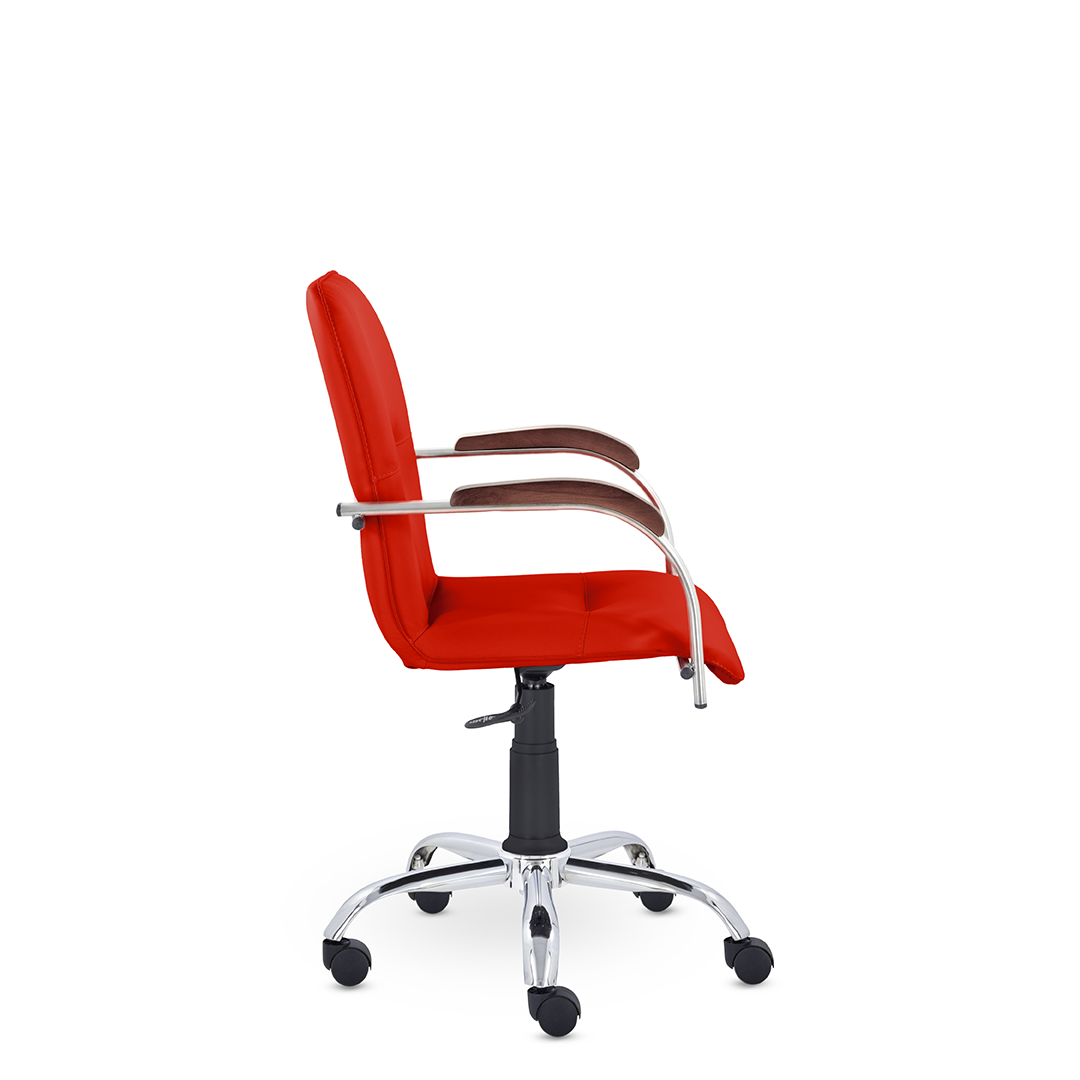 Улучшенная комплектация стула Самба включает горизонтальные прострочки, соединяющие спинку и сиденье, что придает креслу элегантный вид. Удобные накладки обеспечивают комфортную поддержку рук и способствуют их расслаблению.