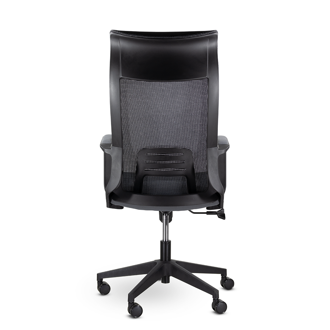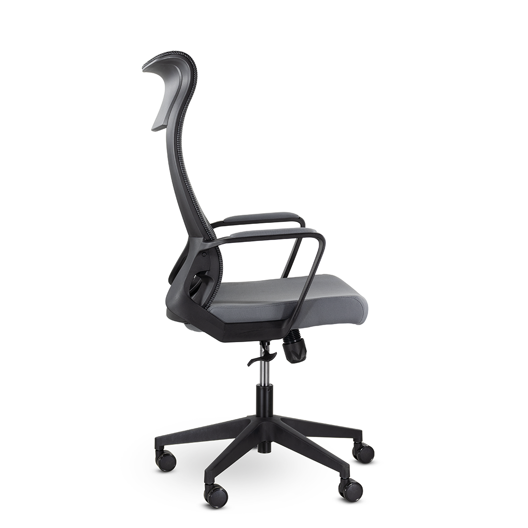 Универсальное кресло обеспечивает максимальный комфорт благодаря высокой спинке, эргономика которой полностью повторяет изгиб тела, поясничной поддержке и глубокому сидению. Широкие подлокотники являются частью каркаса. Кресло в стиле hi-tech отлично дополнит современный кабинет или коворкинг. Подходит как для руководителя так и для персонала.