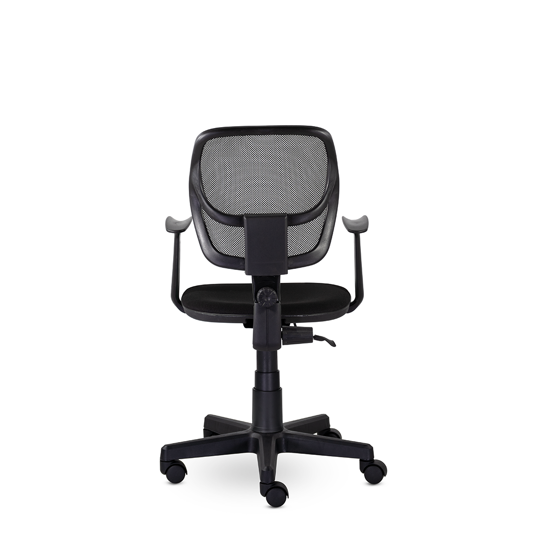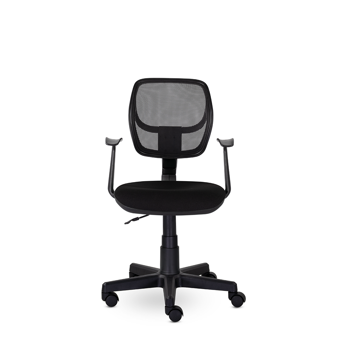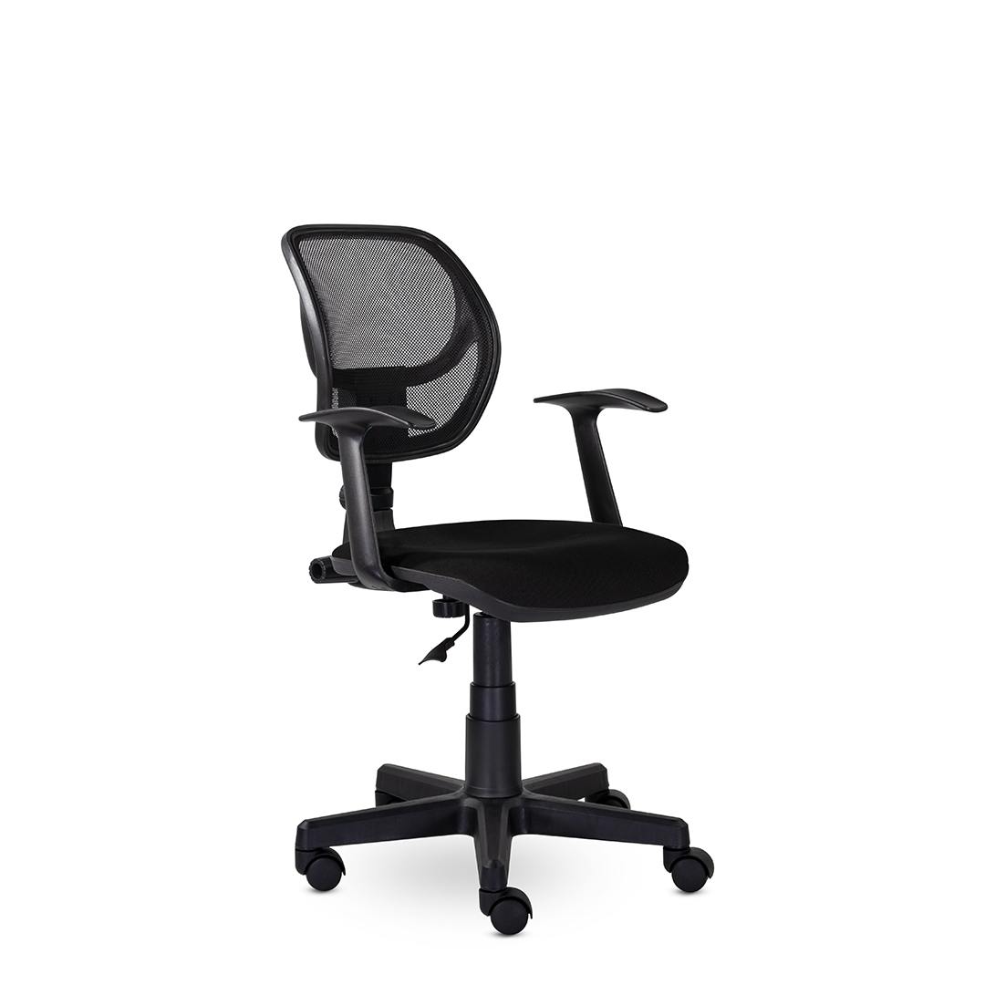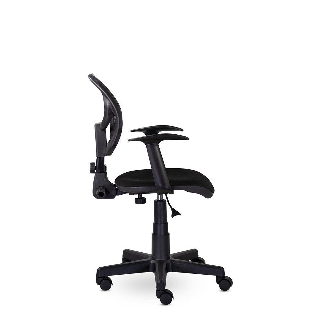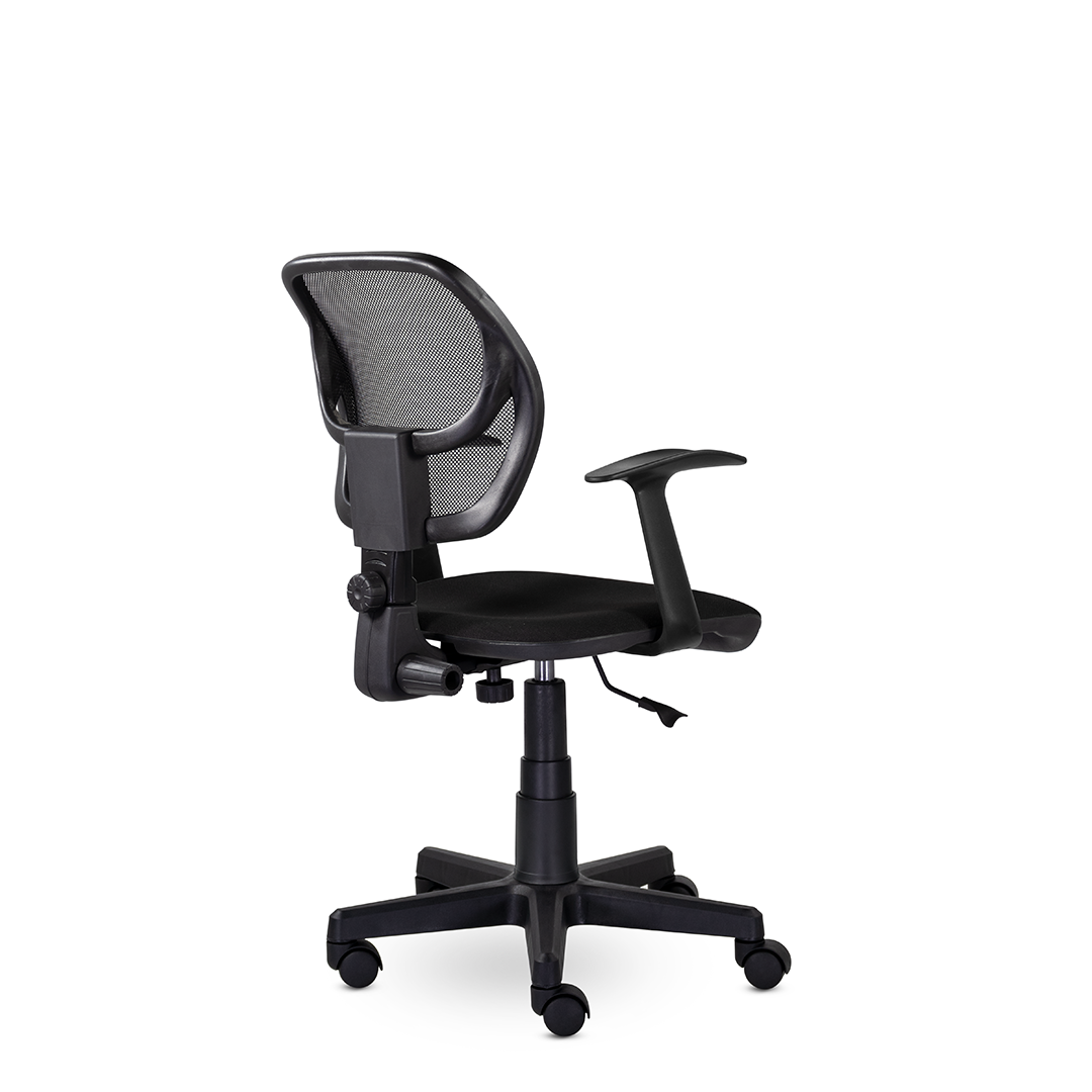 Компактное кресло для дома и офиса. Спинка, обтянутая прочной сеткой, имеет поясничный упор, обладает эффективной воздухопроницаемостью. Возможность регулировать угол наклона спинки и высоту кресла. Удобные Т-образные подлокотники.