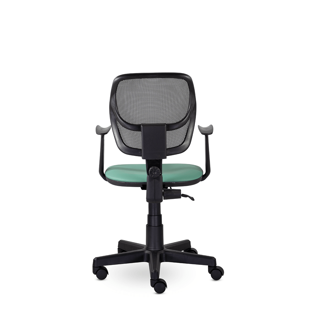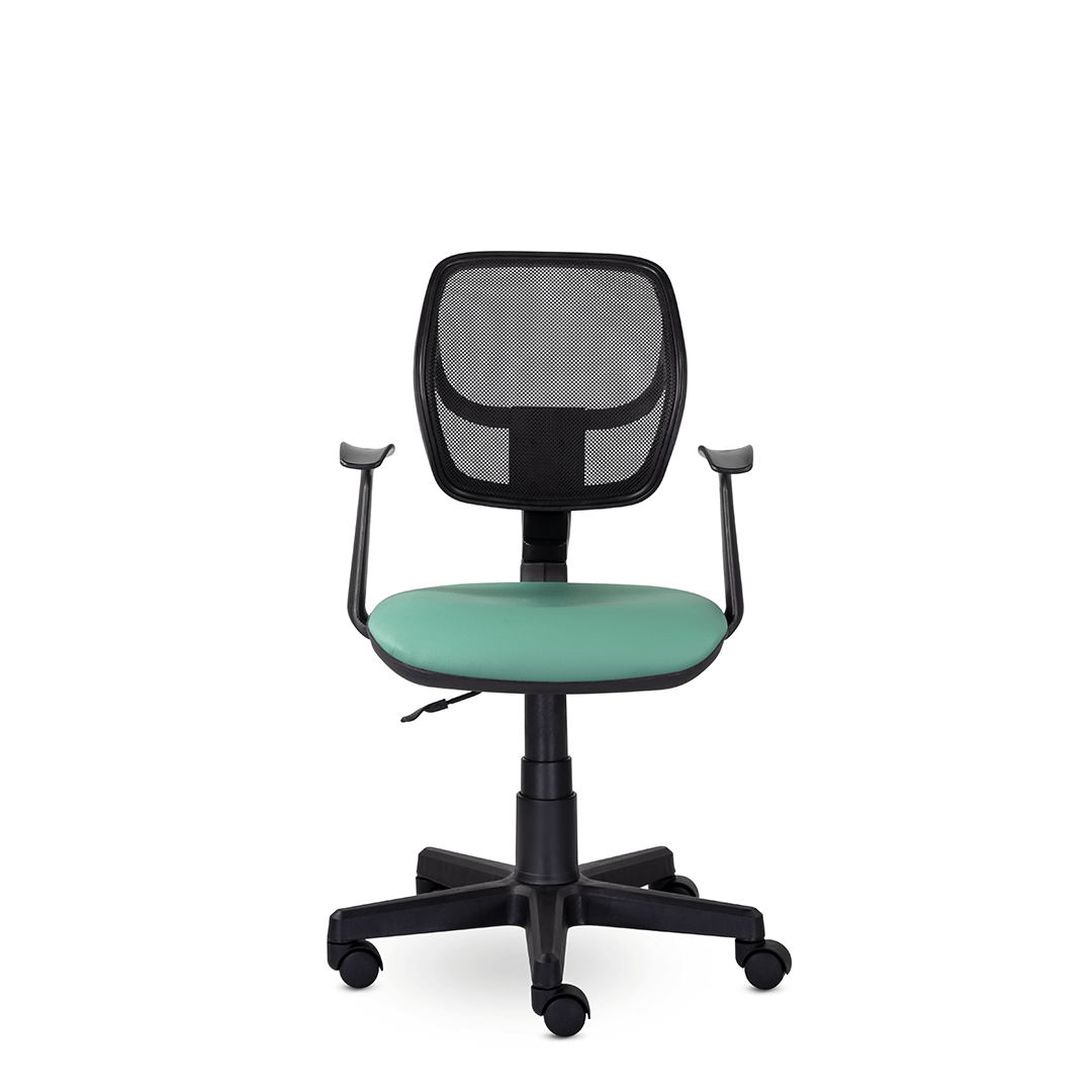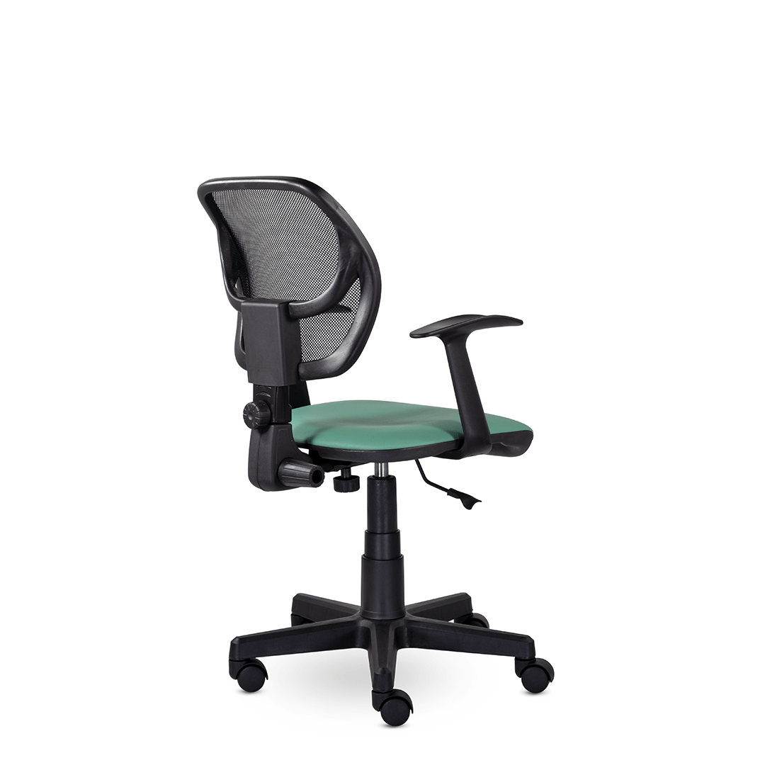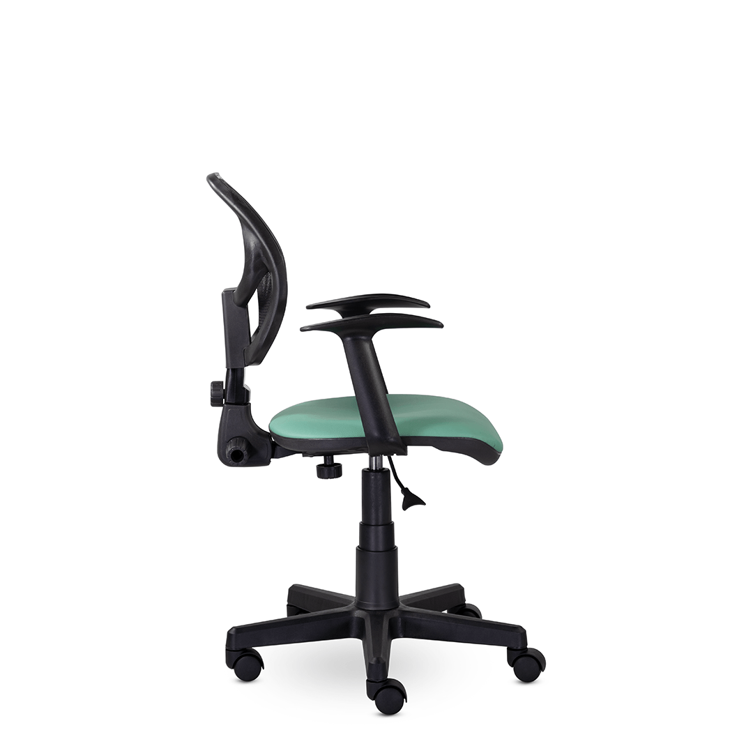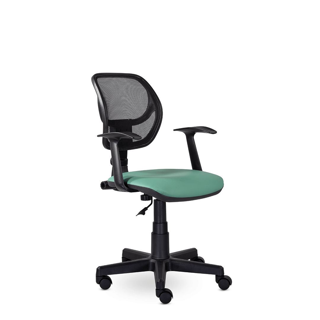 Компактное кресло для дома и офиса. Спинка, обтянутая прочной сеткой, имеет поясничный упор, обладает эффективной воздухопроницаемостью. Возможность регулировать угол наклона спинки и высоту кресла. Удобные Т-образные подлокотники.