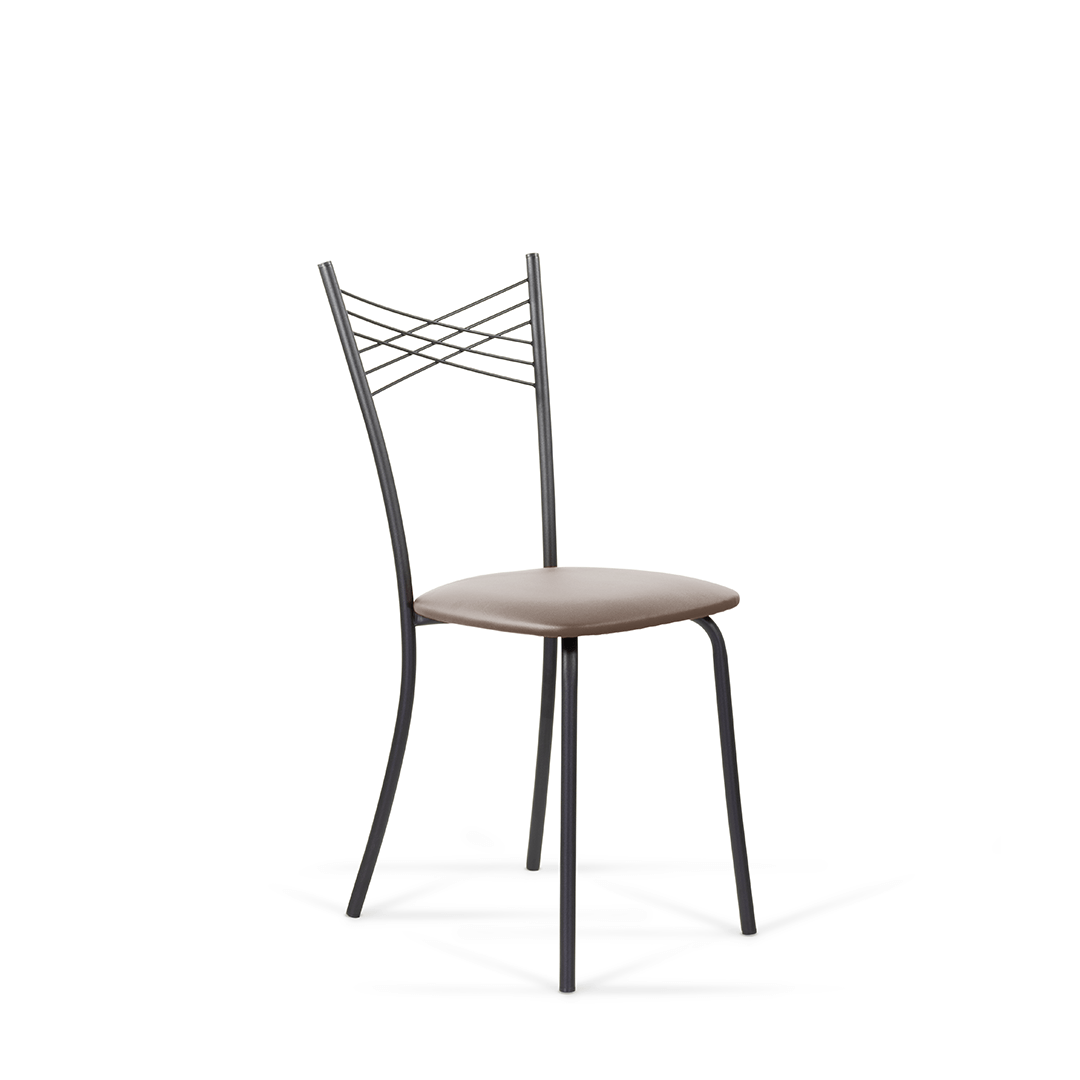 Воздушная модель стула имеет интересный дизайн спинки, представляющую собой крестообразное пресечение нескольких металлических нитей, образующих в центре маленькие ромбики. Каркас стула выполнен из металла.