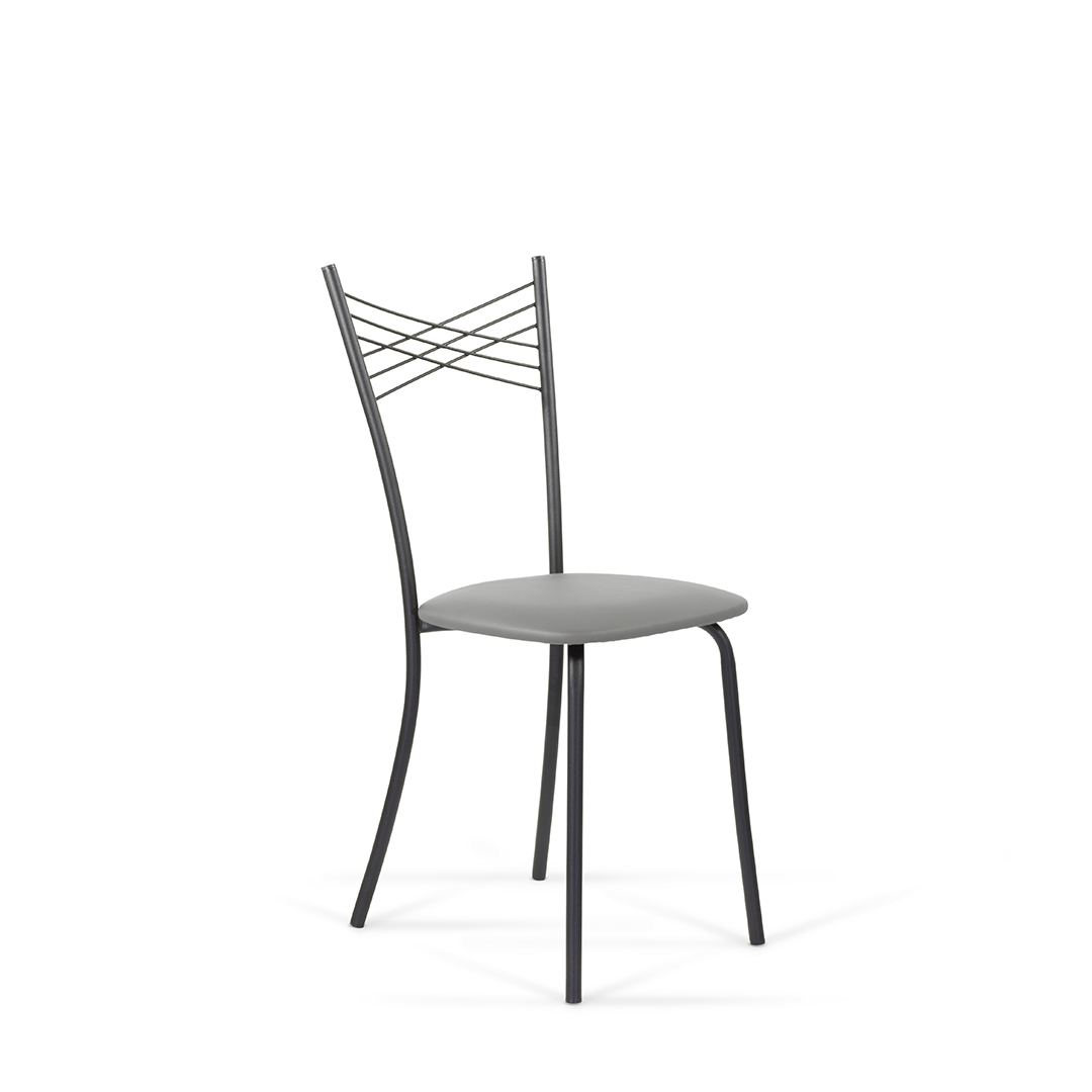 Воздушная модель стула имеет интересный дизайн спинки, представляющую собой крестообразное пресечение нескольких металлических нитей, образующих в центре маленькие ромбики. Каркас стула выполнен из металла.