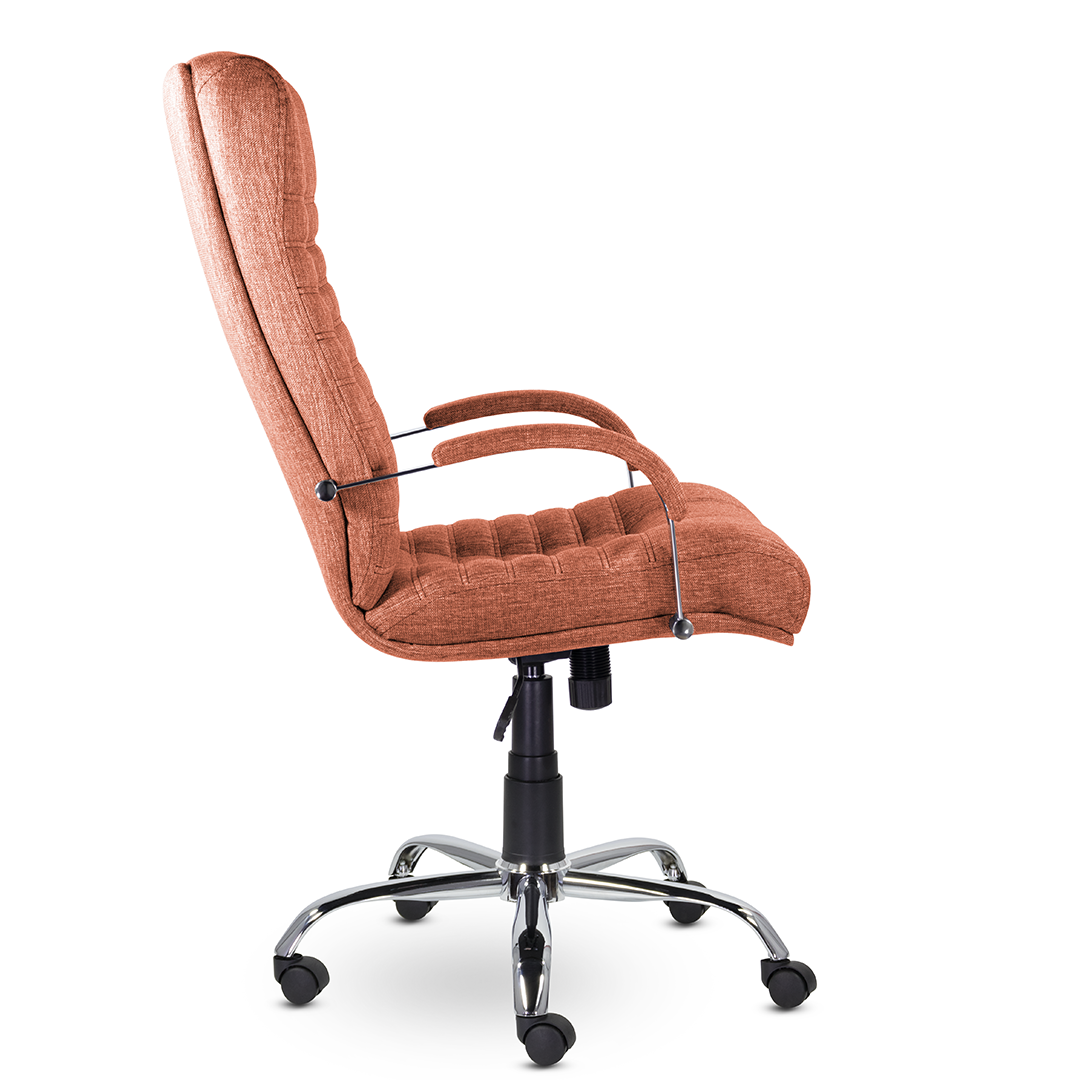 Удобное кресло руководителя с необычным дизайном. Широкая спинка имеет множество горизонтальных прострочек и ярко выраженный подголовник. Множество вариантов обивки и комплектаций кресла. Максимальная нагрузка до 120 кг.