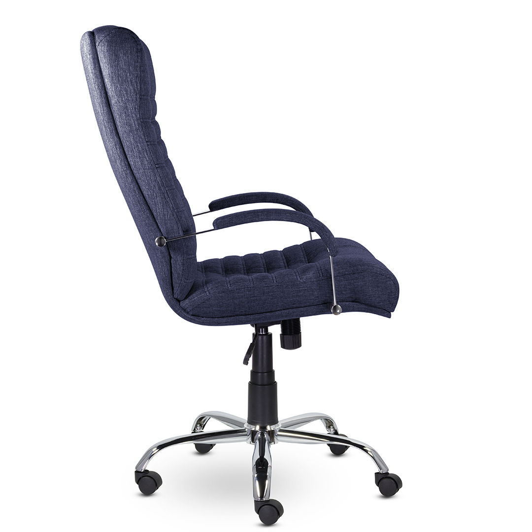 Удобное кресло руководителя с необычным дизайном. Широкая спинка имеет множество горизонтальных прострочек и ярко выраженный подголовник. Множество вариантов обивки и комплектаций кресла. Максимальная нагрузка до 120 кг.