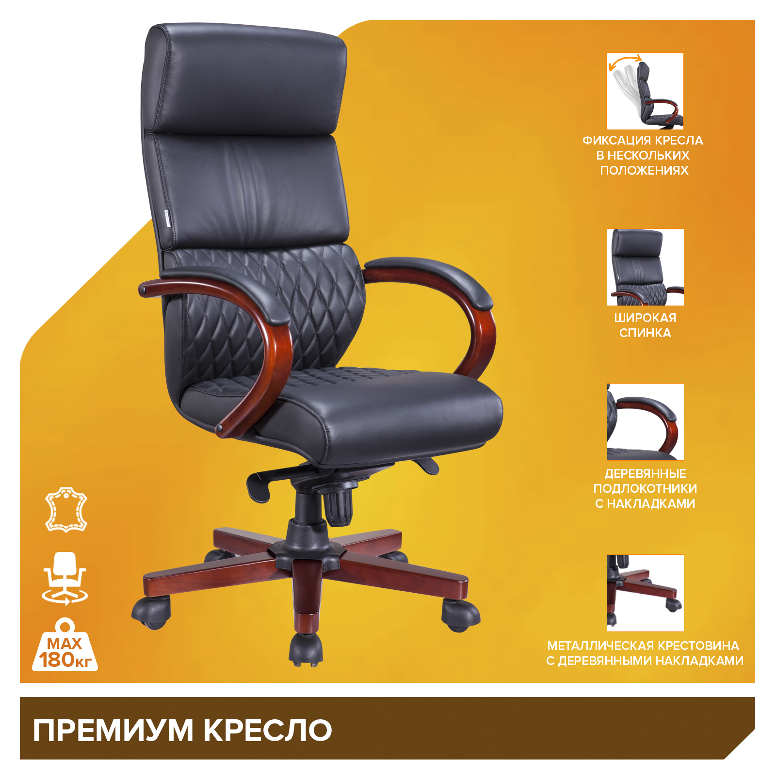 Кресло Everprof President Wood Кожа Черный EP 101 W LEATHER BLACK купить по цене 64050 руб. в Санкт-Петербурге — интернет магазин РЕМИ