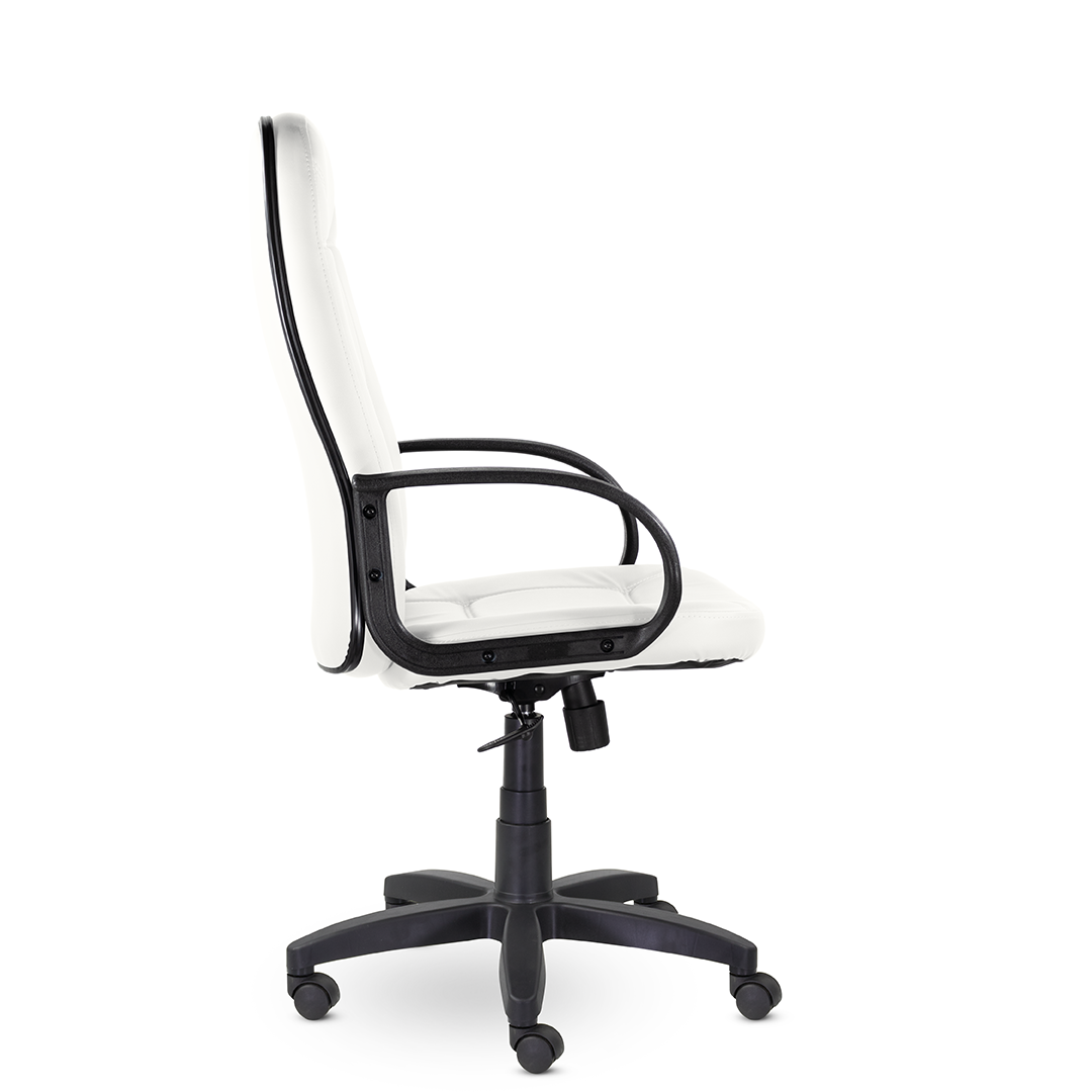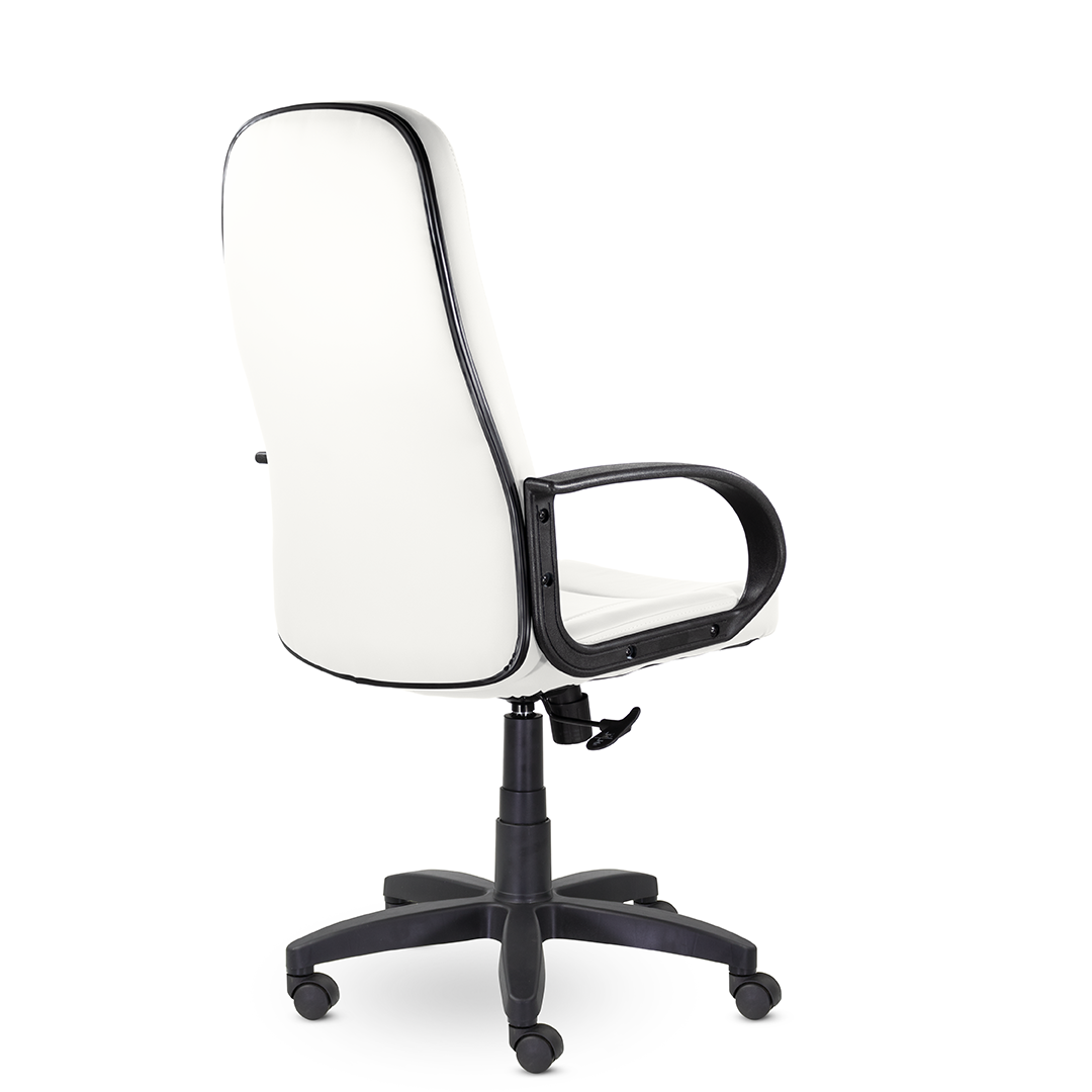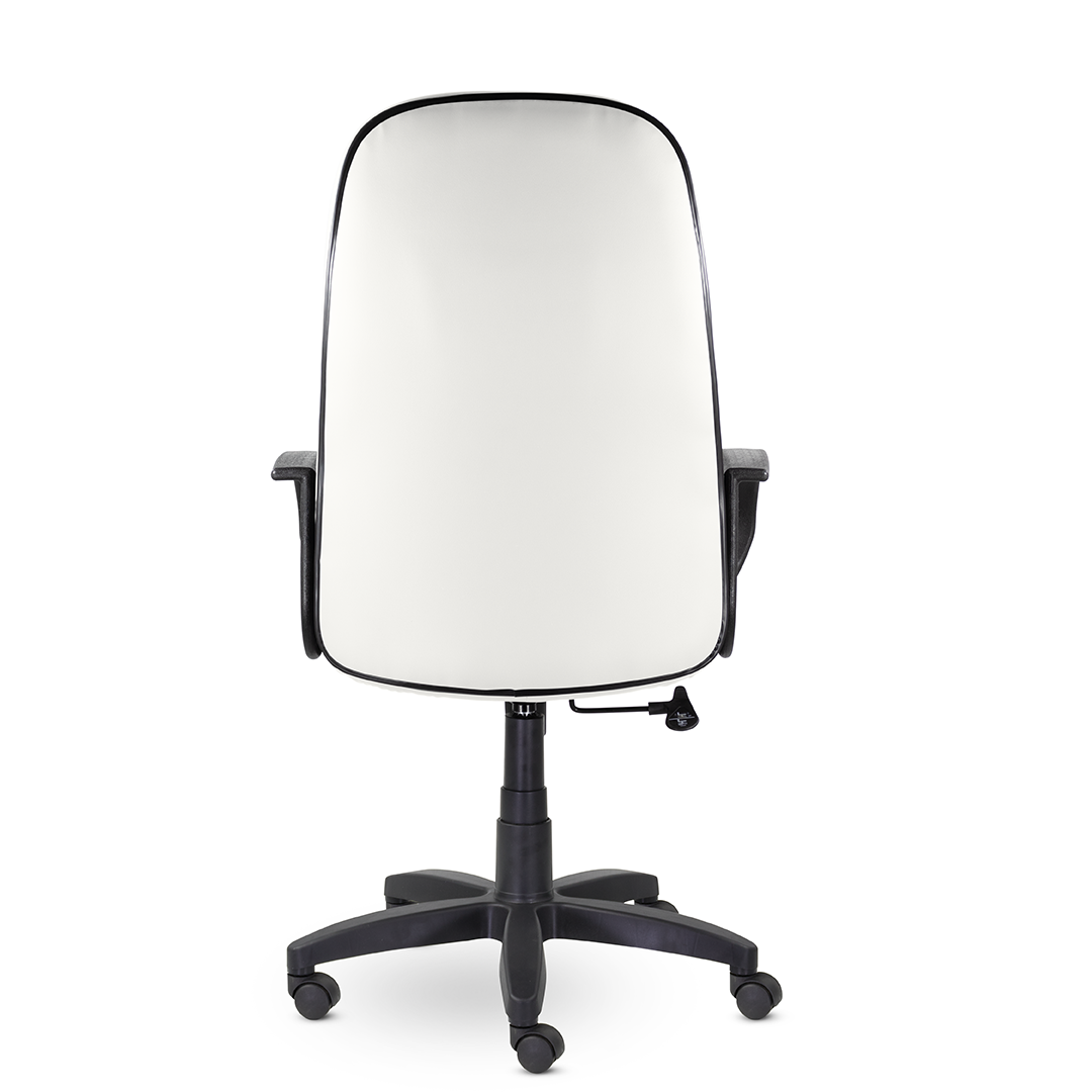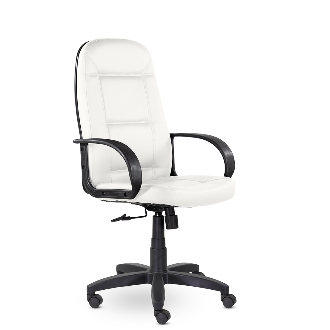 Высокая спинка с горизонтальными прострочками, облокотившись на которую ваша шея сможет отдохнуть, глубокое сидение и широкие подлокотники - все, что нужно для комфортного рабочего дня. Подойдет как для руководителей, так и для персонала. Пластиковая крестовина выдерживает вес до 100 кг.