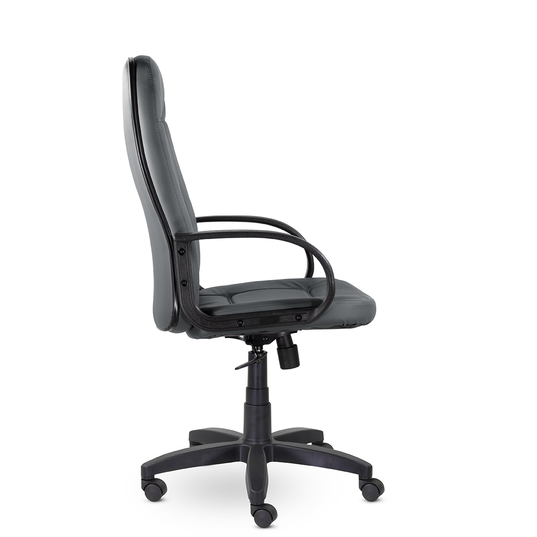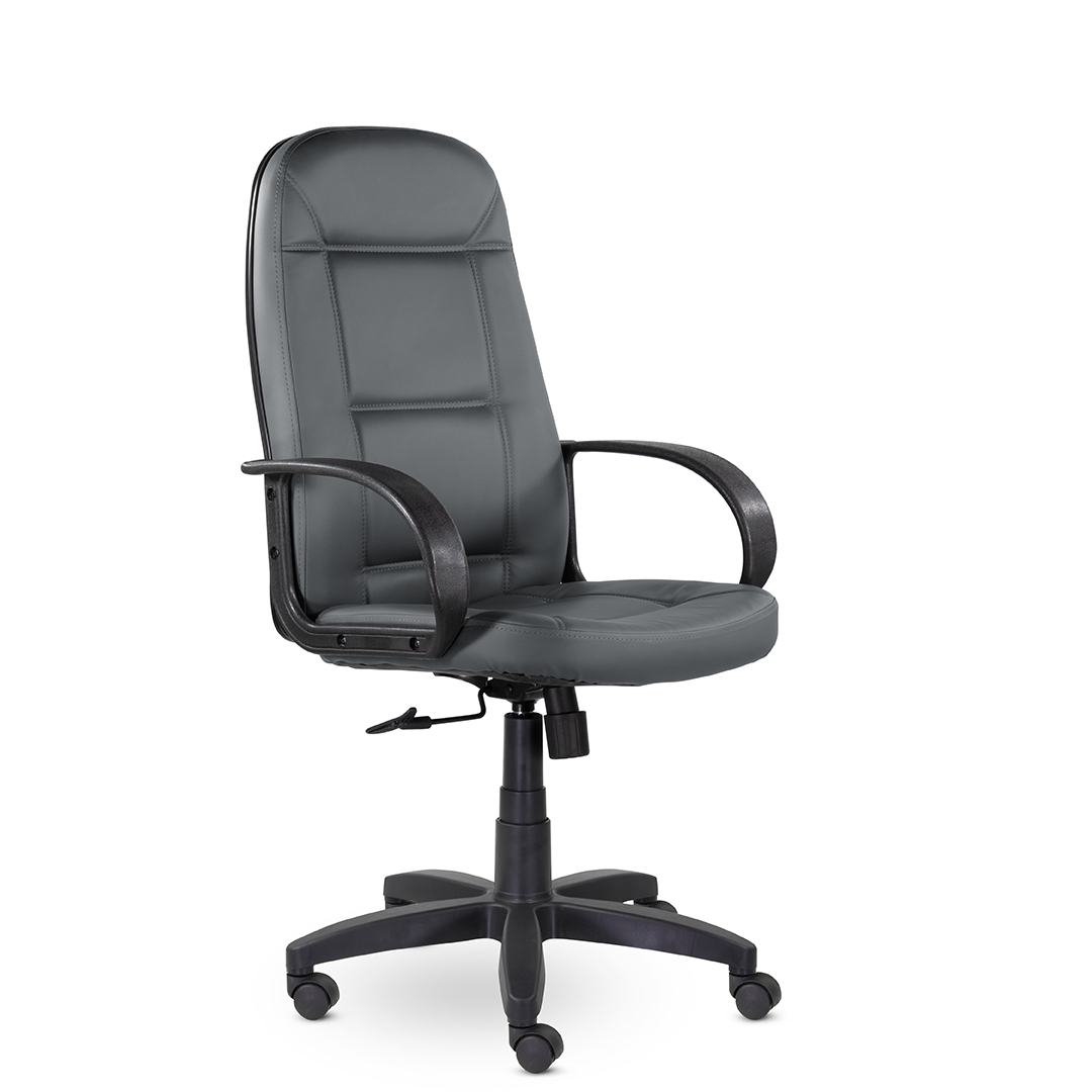 Высокая спинка с горизонтальными прострочками, облокотившись на которую ваша шея сможет отдохнуть, глубокое сидение и широкие подлокотники - все, что нужно для комфортного рабочего дня. Подойдет как для руководителей, так и для персонала. Пластиковая крестовина выдерживает вес до 100 кг.