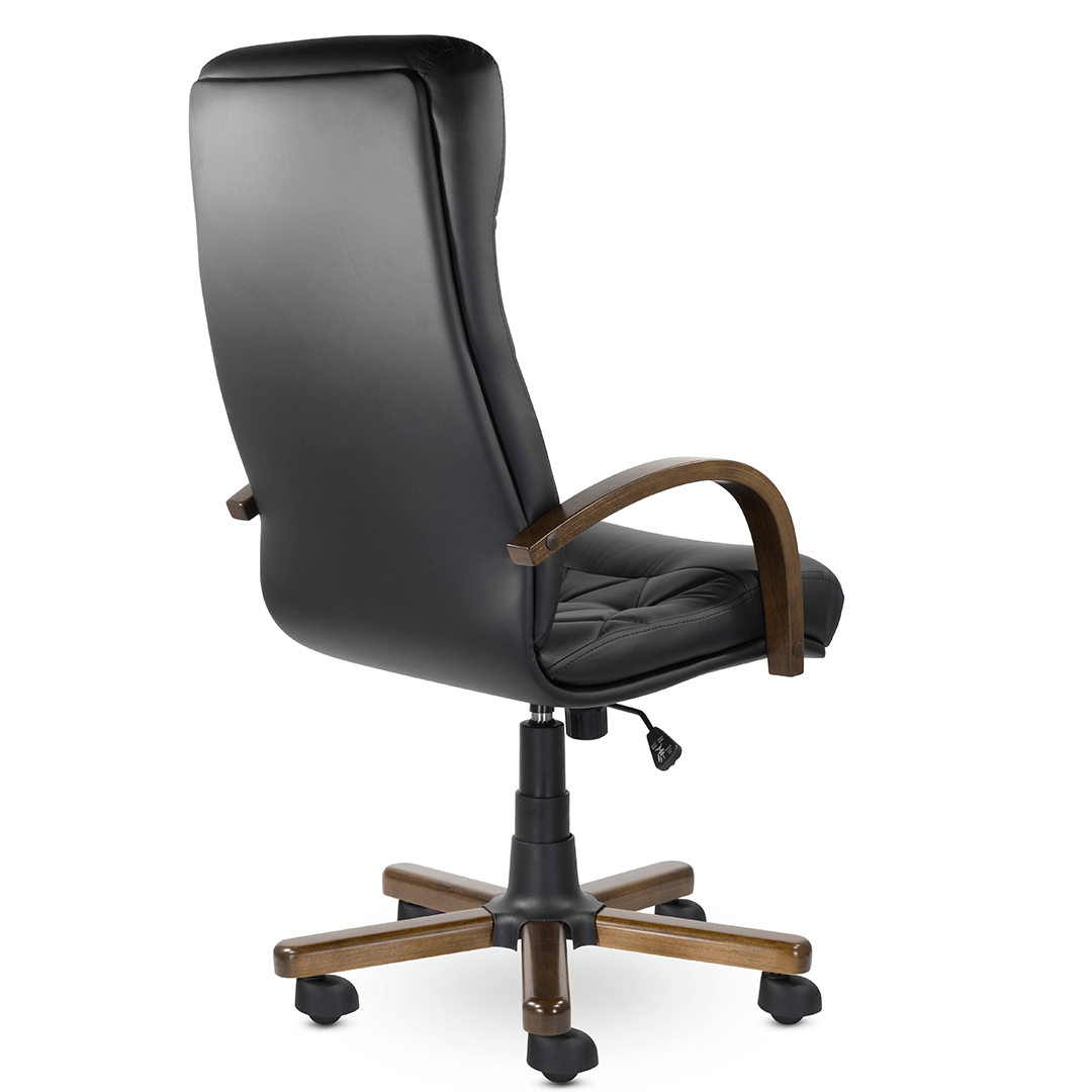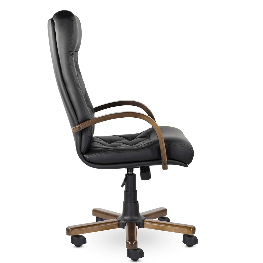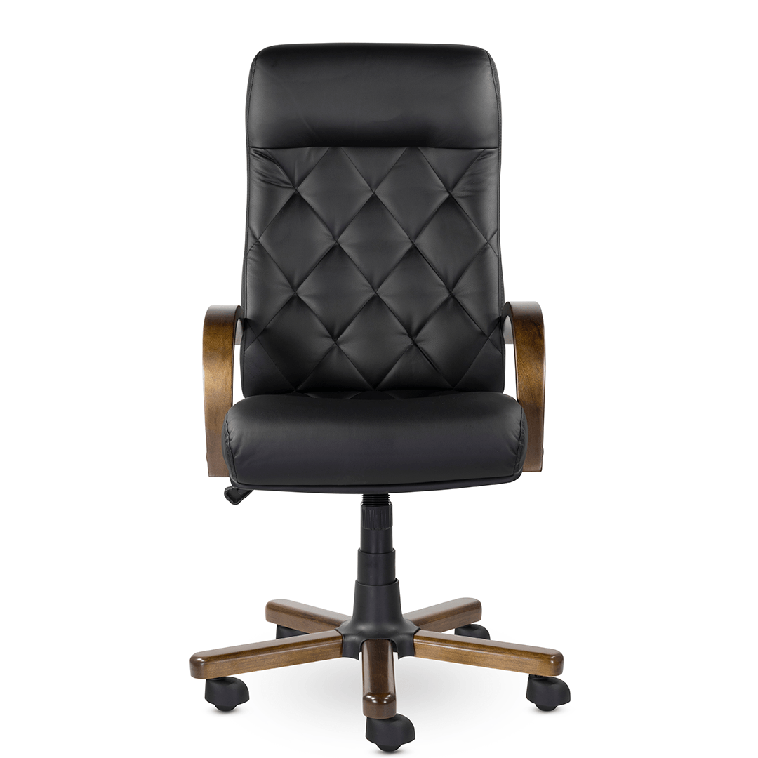Это кресло восхищает своим изяществом и одновременно строгостью. Кресло имеет креативную прострочку, которая делит каркас на небольшие квадраты, а также широкий подголовник. Обивка - натуральная кожа, а подлокотники и крестовина - натуральное дерево.