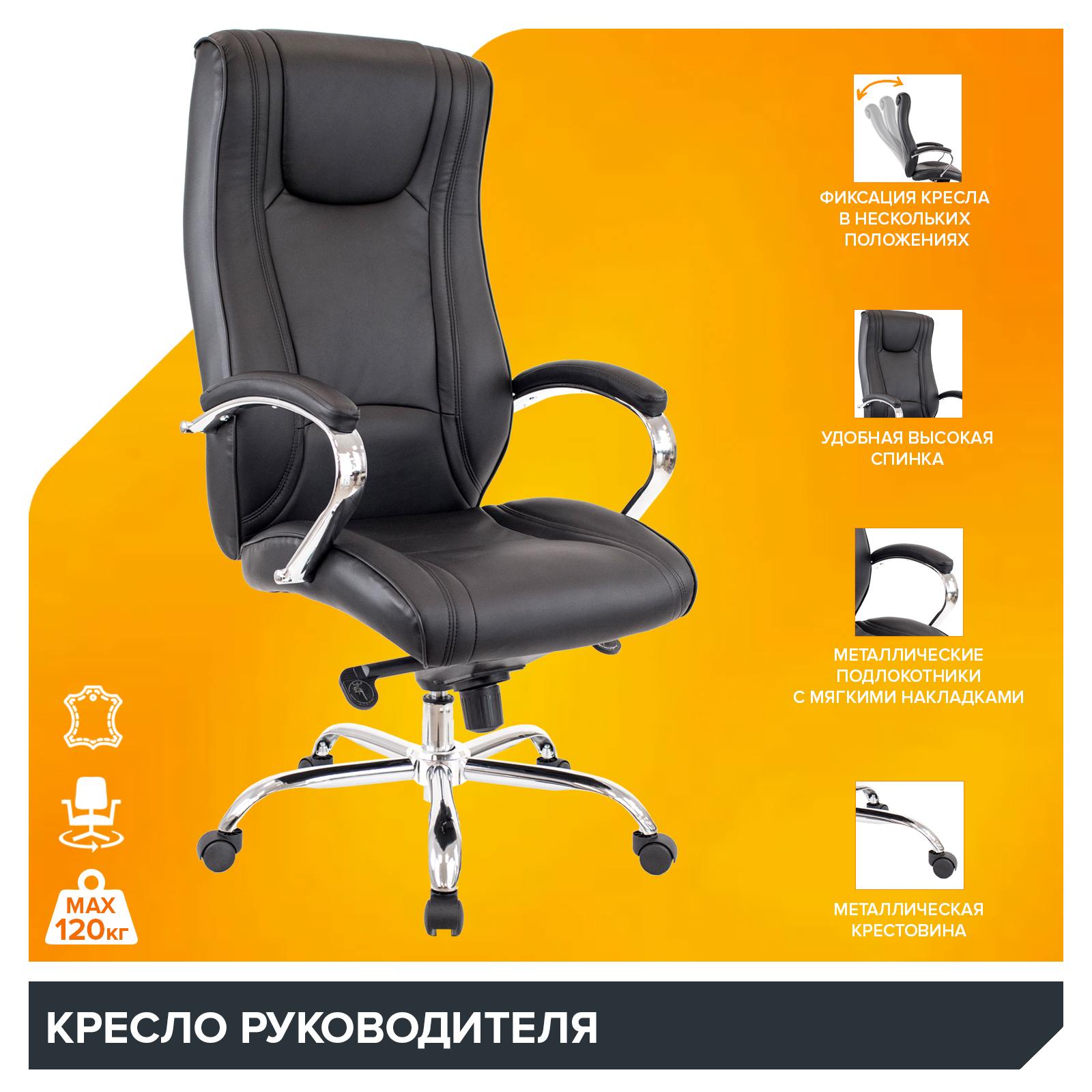 Кресло Everprof King M Кожа Черный EC-370 LEATHER BLACK купить по цене 43950 руб. в Санкт-Петербурге — интернет магазин РЕМИ