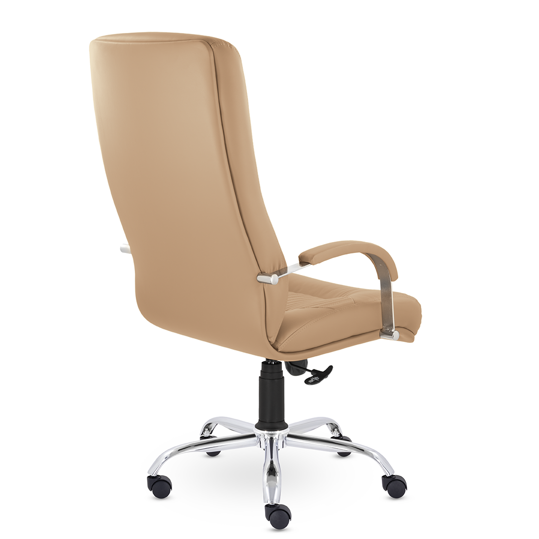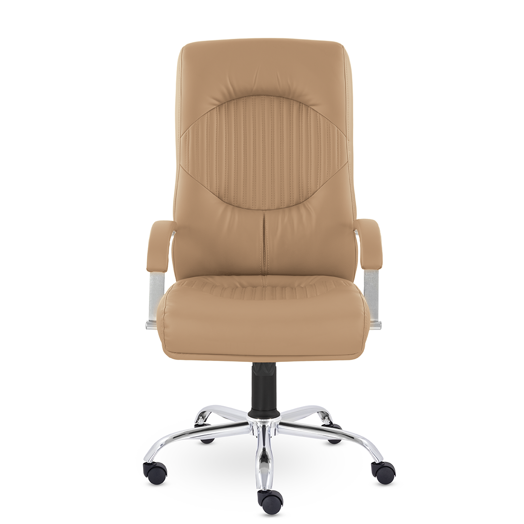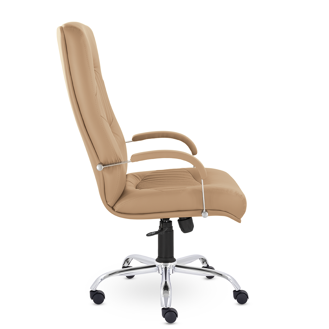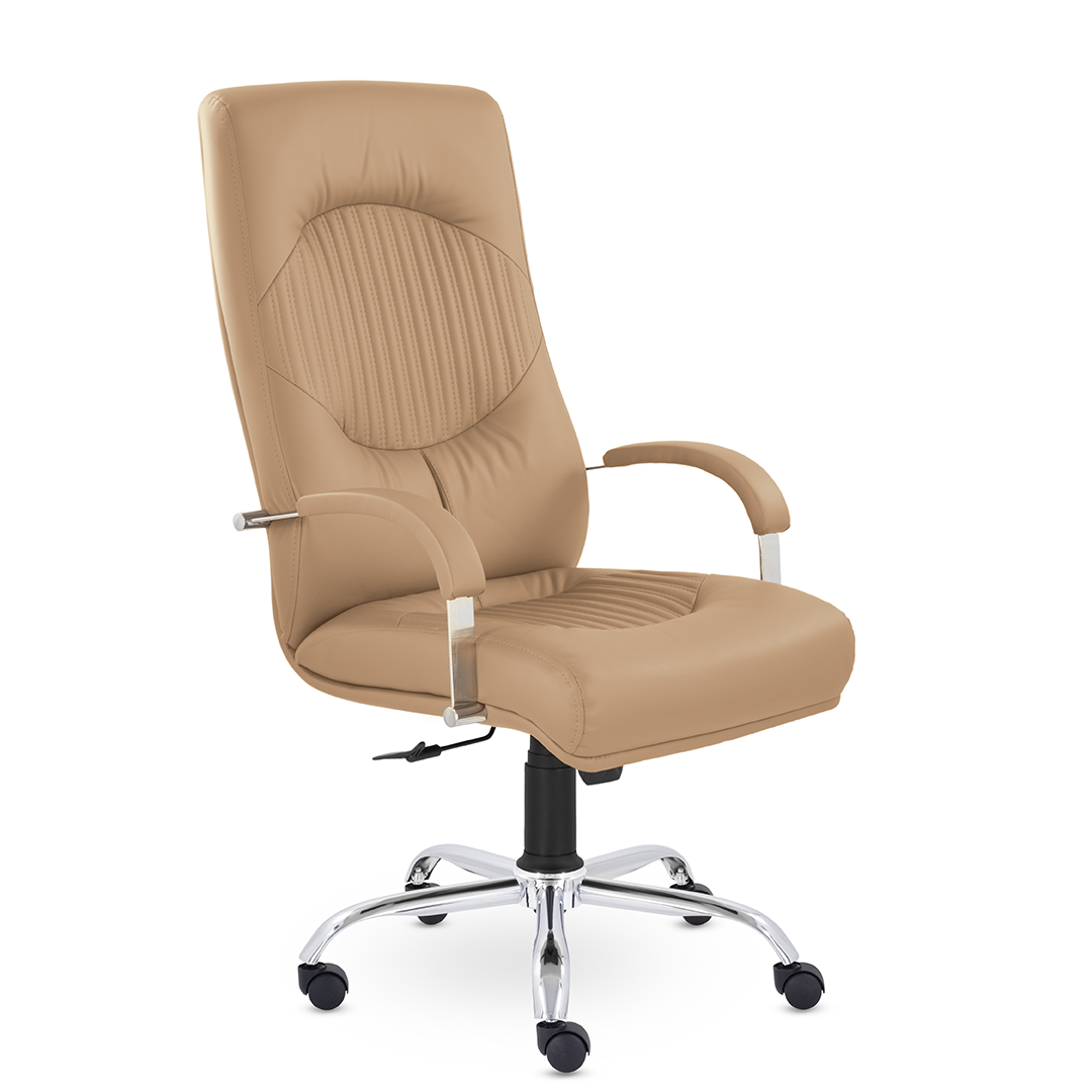 Кресло руководителя имеет две увеличенные подушки на спинке и сидении для поддержки спины и головы, которые разделяются декоративными вставками. Мягкие накладки на подлокотниках обеспечат комфортное положение рук. Максимальная нагрузка 120 кг.