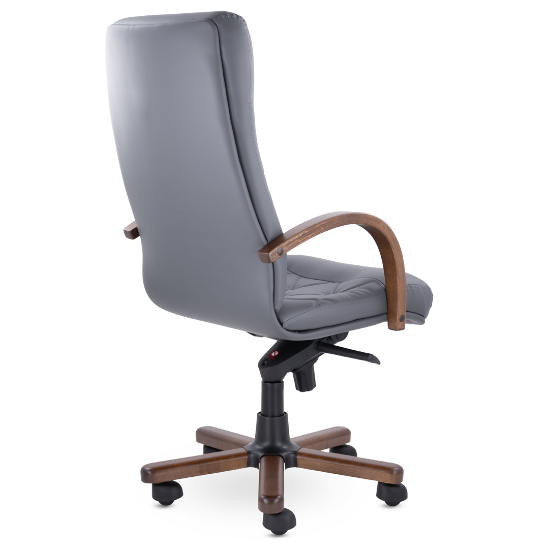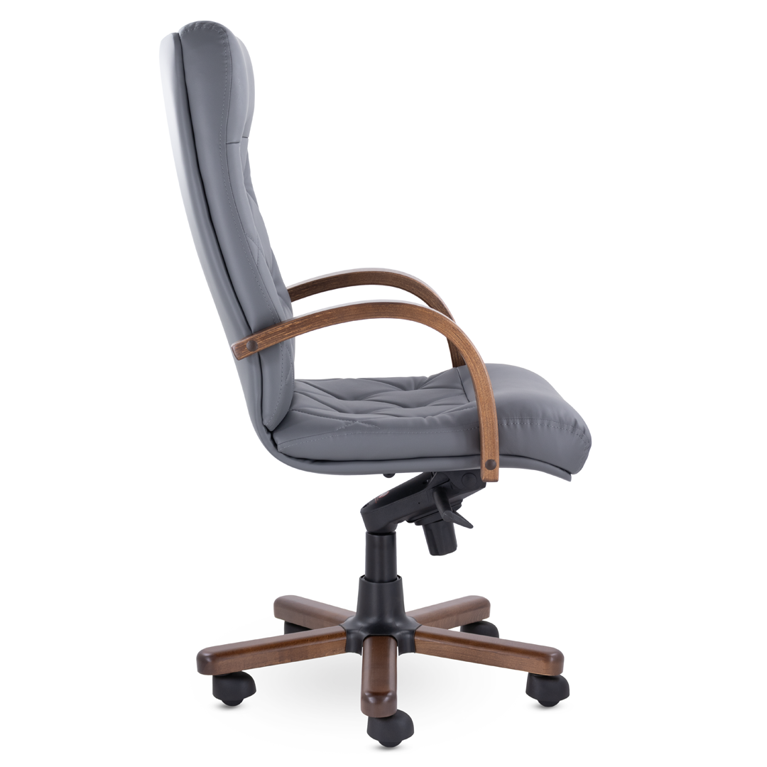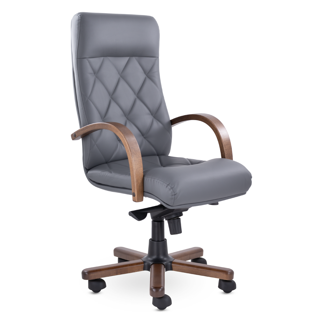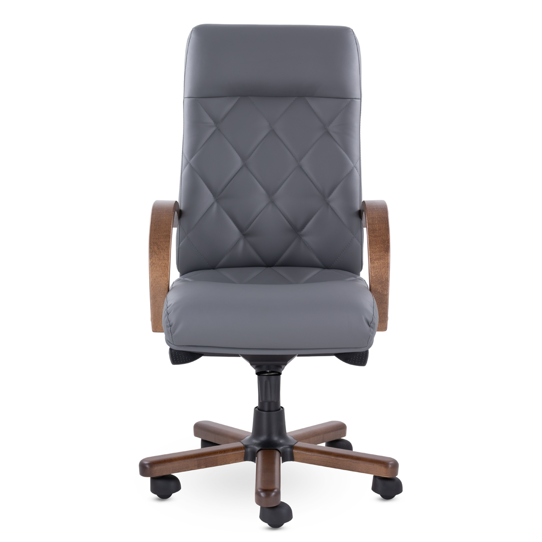 Это кресло восхищает своим изяществом и одновременно строгостью. Кресло имеет креативную прострочку, которая делит каркас на небольшие квадраты, а также широкий подголовник. Подлокотники и крестовина - натуральное дерево. Механизм качания мультиблок с регулировкой под вес пользователя фиксирует спинку вертикально и позволяет отклонять её назад в 5 положениях. Кресло выдерживает нагрузку до 120 кг.