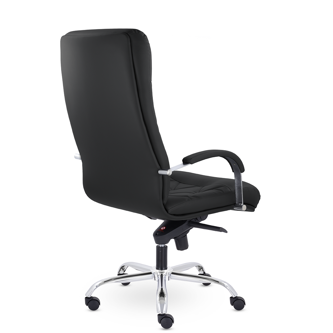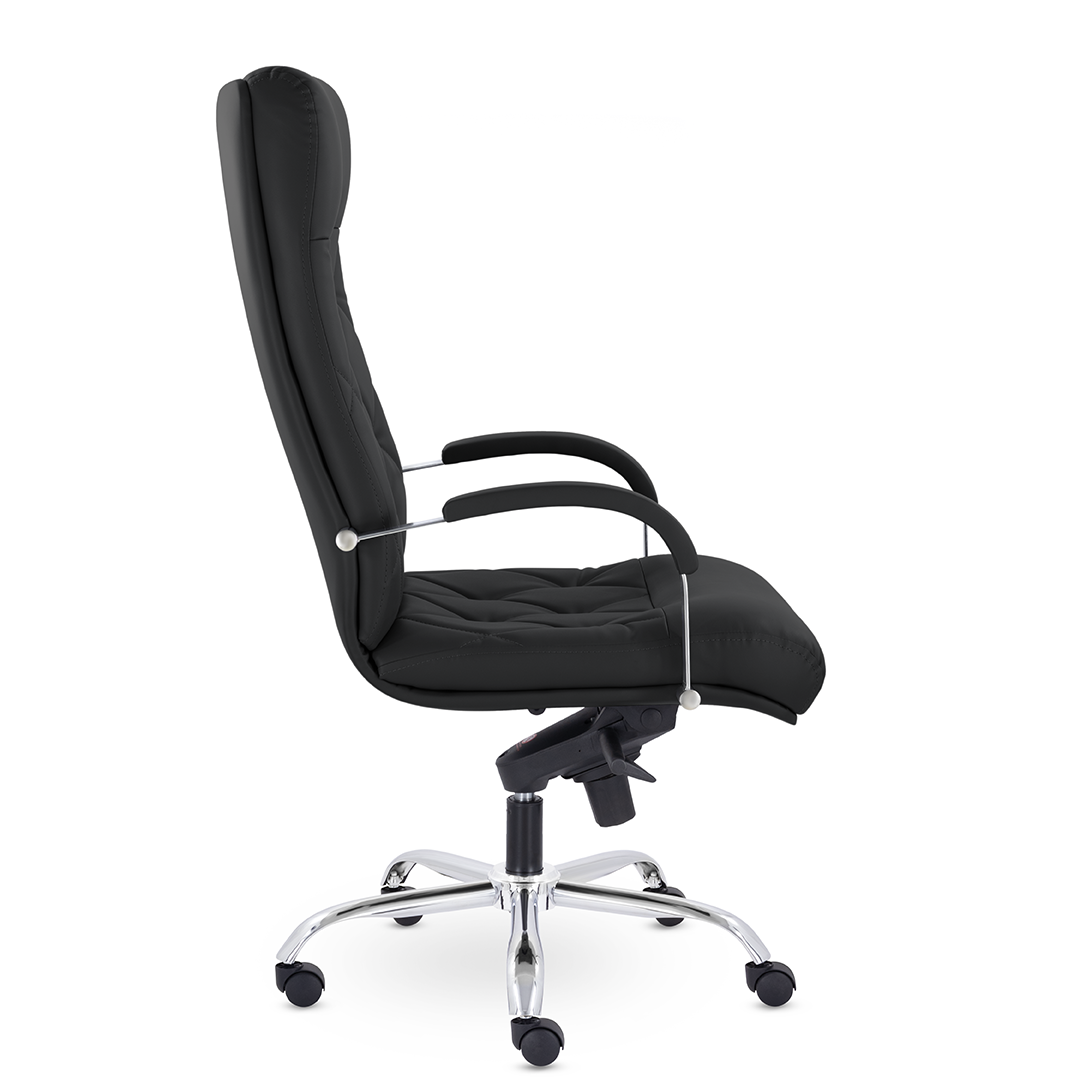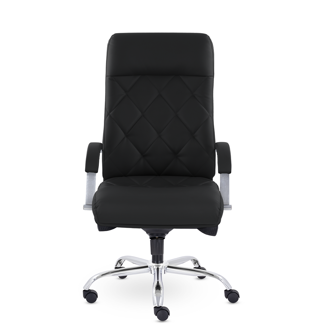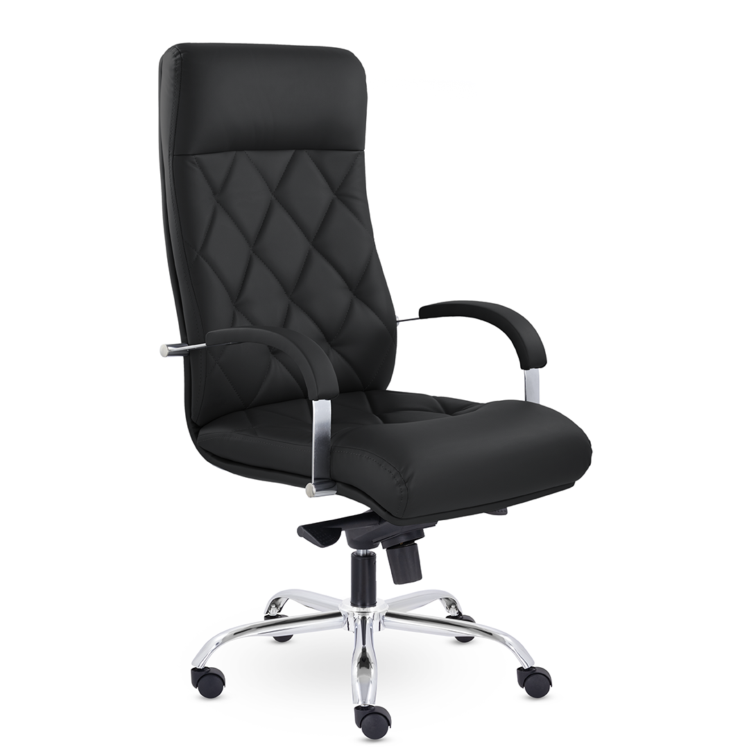Это кресло восхищает своим изяществом и одновременно строгостью. Кресло имеет креативную прострочку, делящие каркас на небольшие квадраты, а также широкий подголовник. Удобные подлокотники с мягкими накладками и хромированная крестовина. Максимальная нагрузка - 120 кг.