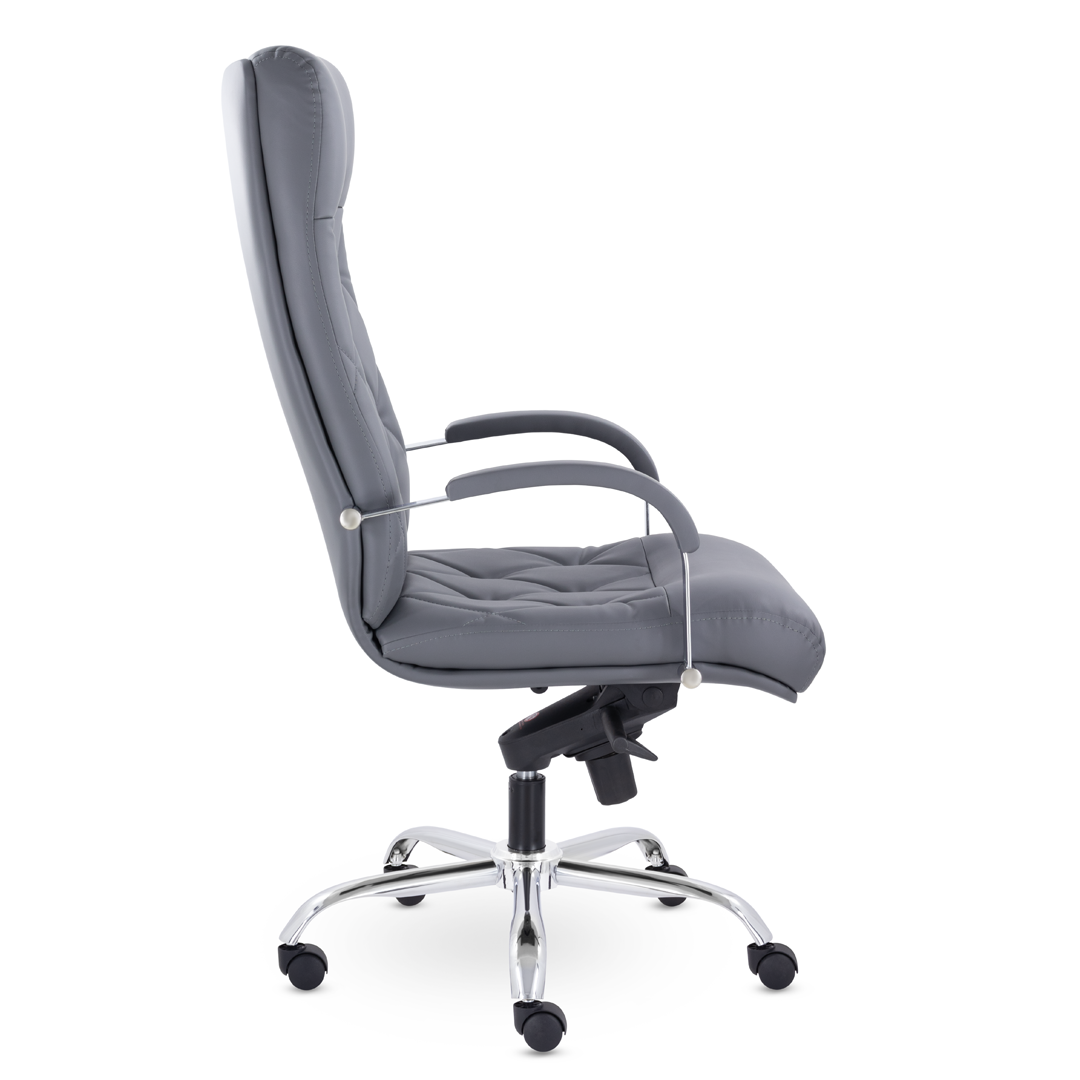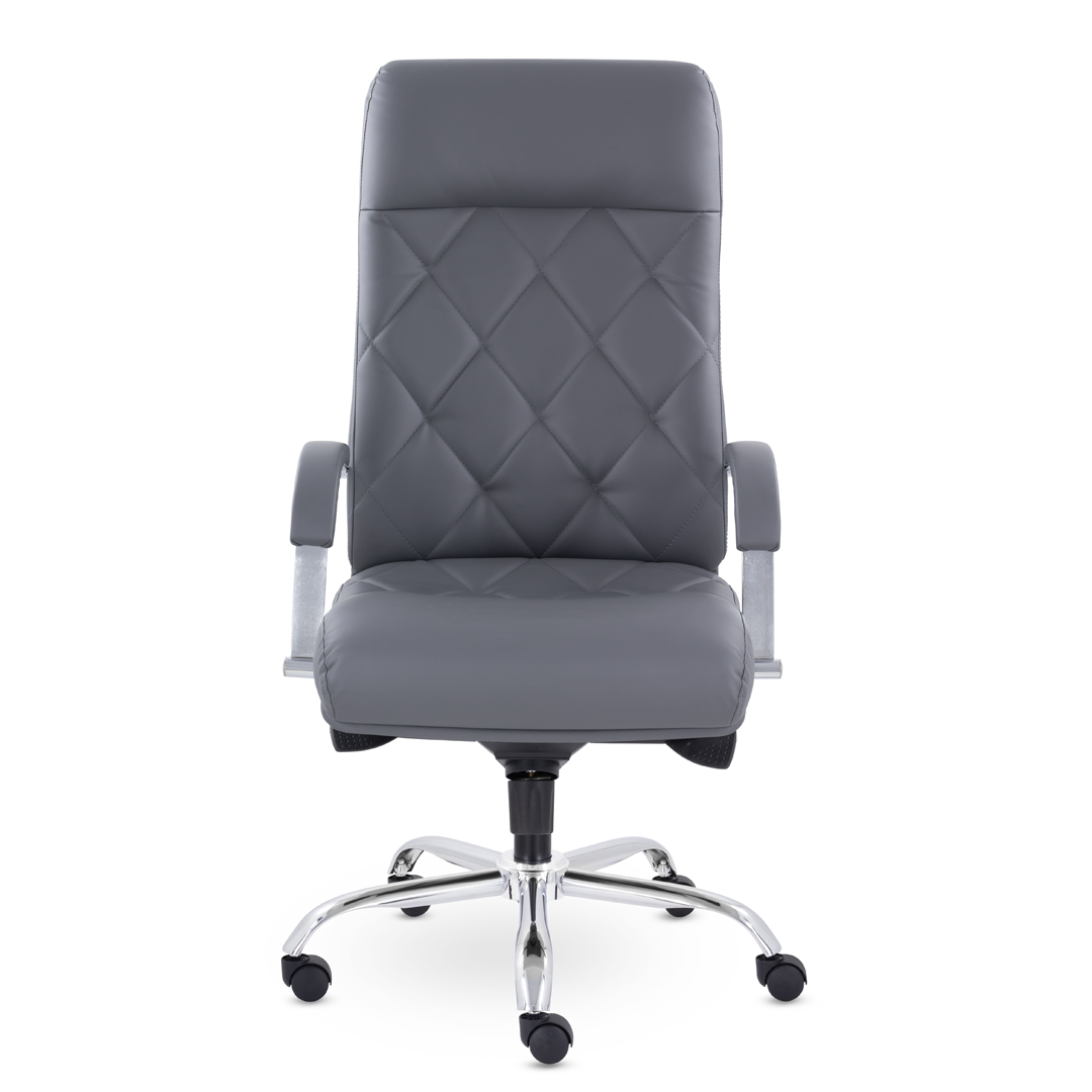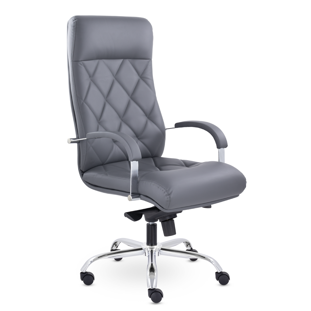 Это кресло восхищает своим изяществом и одновременно строгостью. Кресло имеет креативную прострочку, делящие каркас на небольшие квадраты, а также широкий подголовник. Удобные подлокотники с мягкими накладками и хромированная крестовина. Максимальная нагрузка - 120 кг.