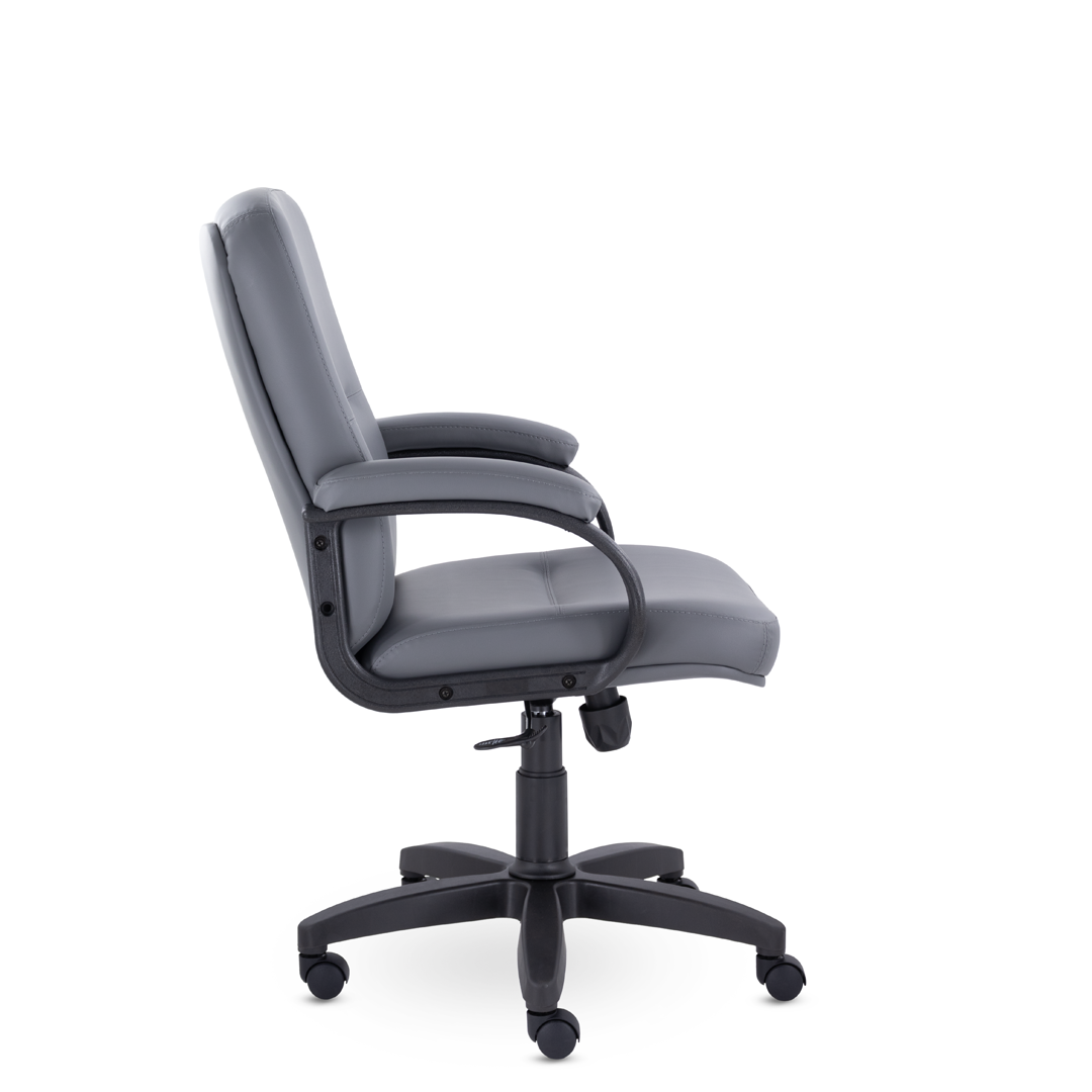 Эргономичная спинка обеспечивает поддержку спины на протяжении всего рабочего дня, а широкое сиденье и подлокотники - комфортную посадку. Кресло хорошо подойдет для строгого кабинета, конференц-зала.