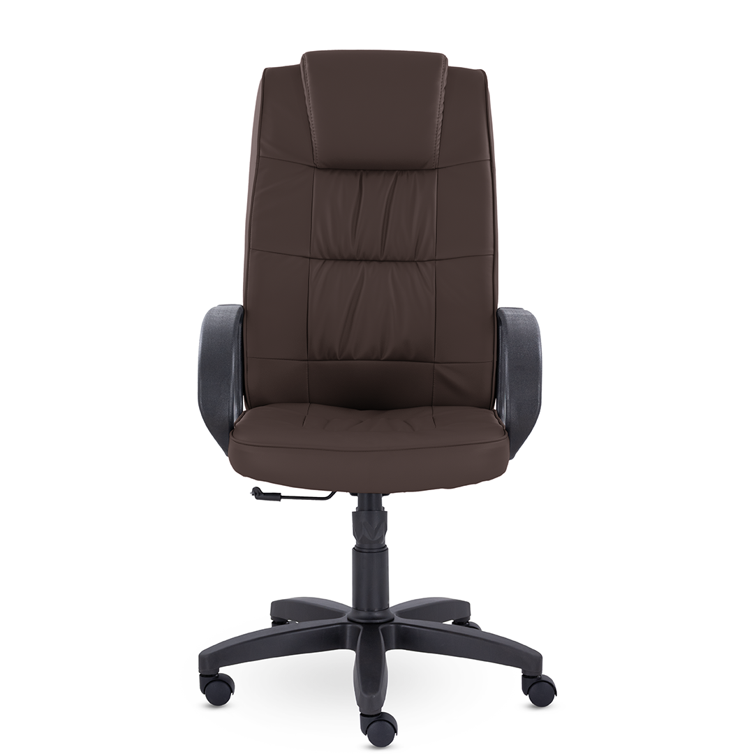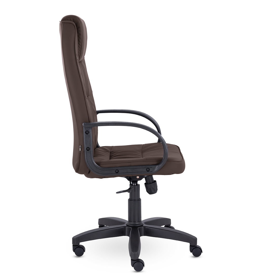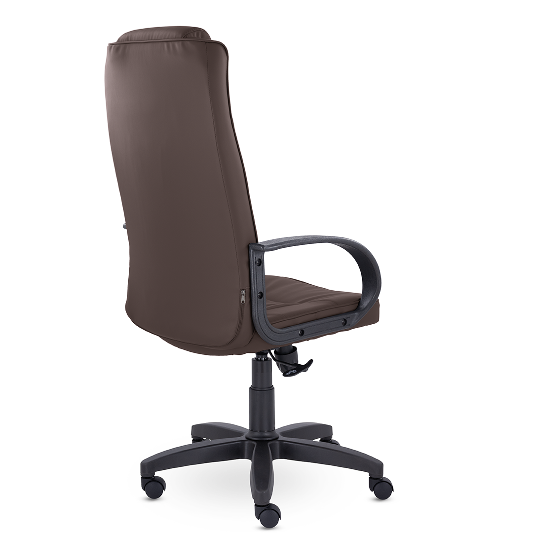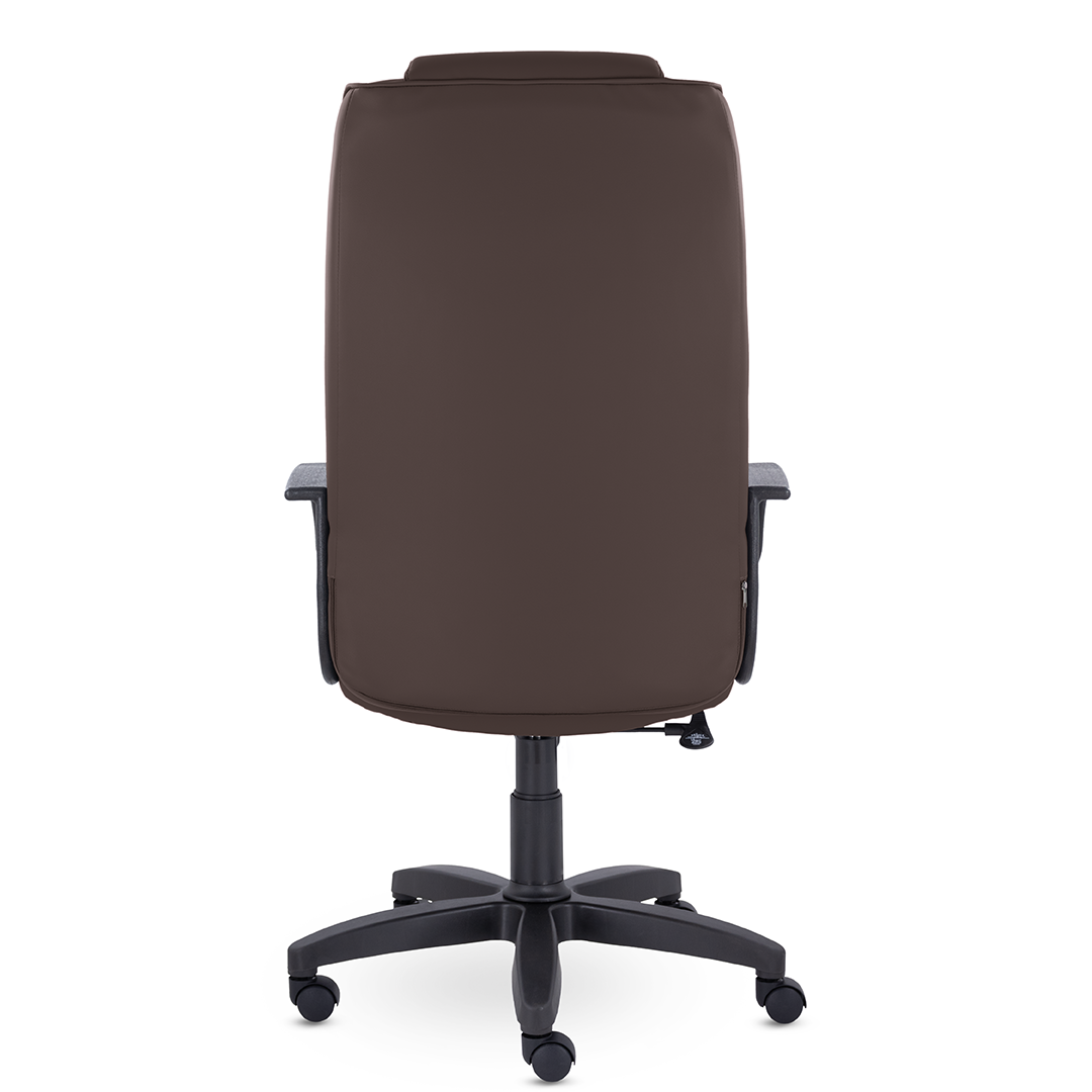 Спинка кресла украшена декоративными прострочками, которые разделяют подголовник и зону поясничной поддержки. Это солидное кресло станет отличным дополнением кабинета руководителя.